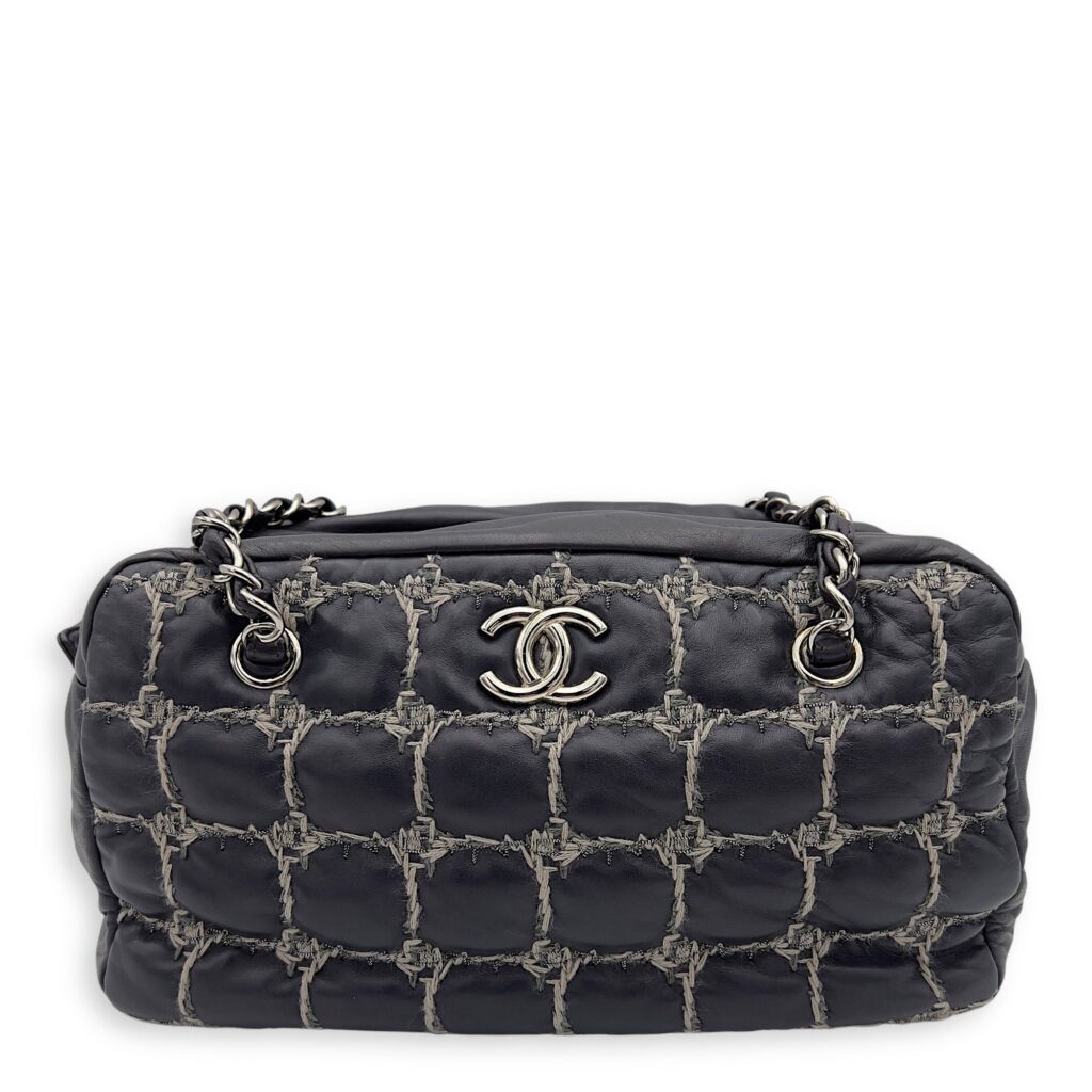 Double Stitch Bubble Grey Shoulder Bag in Tweed and Lambskin, Silver hardware