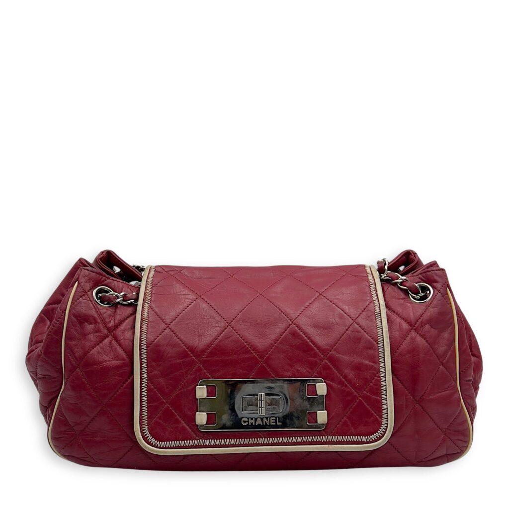 East West Shoulder Bag Red in Calfskin, Silver hardware
