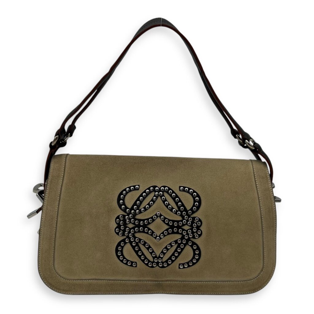 Anagram Shoulder Bag Brown in Suede Leather, Silver hardware