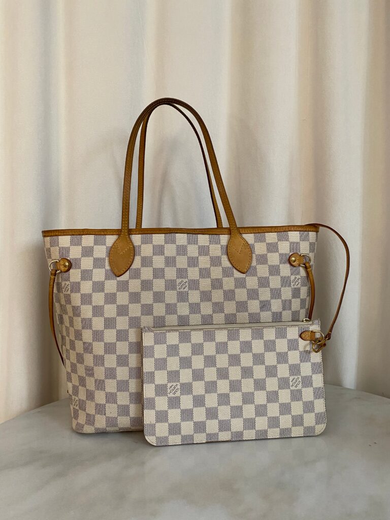 Louis Vuitton Damier Azur Neverfull MM Bag W/ Pouch