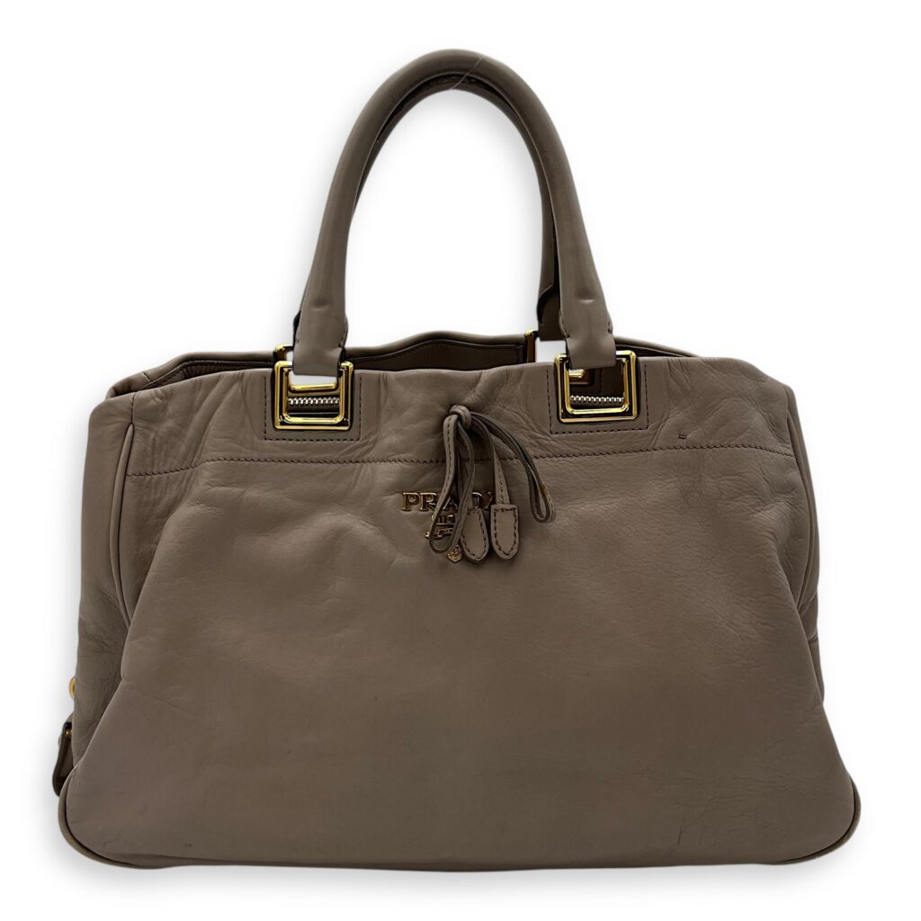 Logo Top Handle Bag Beige in Calfskin, Gold hardware