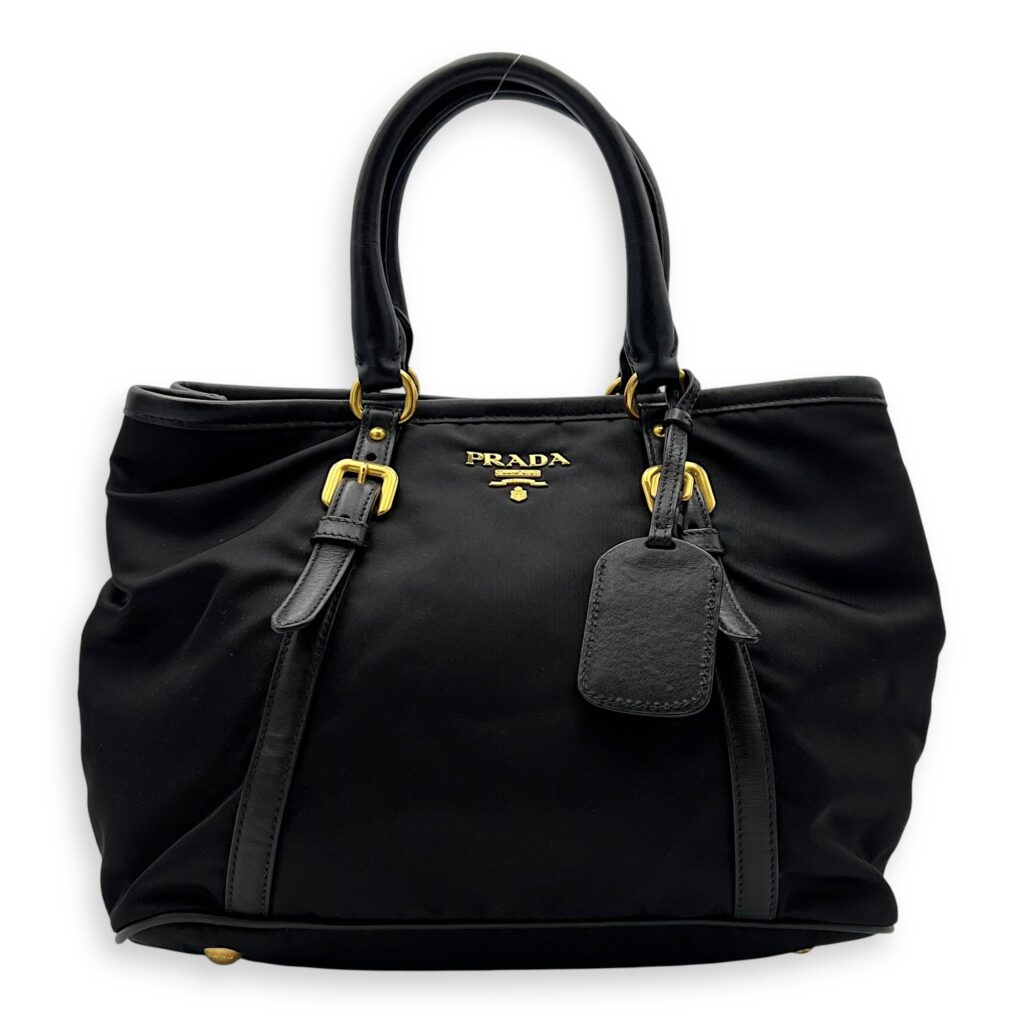 Logo Black Top Handle Bag in Nylon, Gold hardware