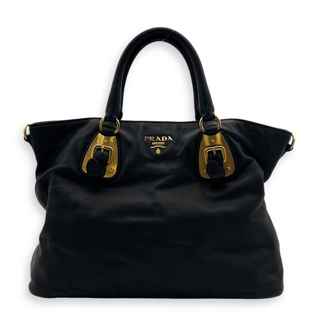 Logo Top Handle Bag Black in Calfskin, Gold hardware