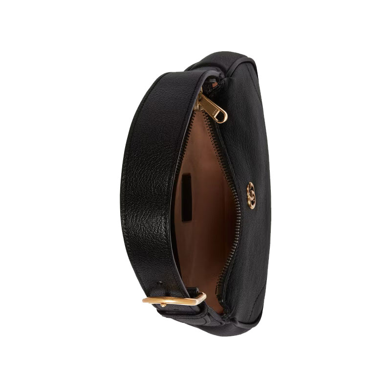 The Aphrodite line welcomes a new shape with this small shoulder bag, it’s presented in a soft black leather with a gold-toned zip closure.