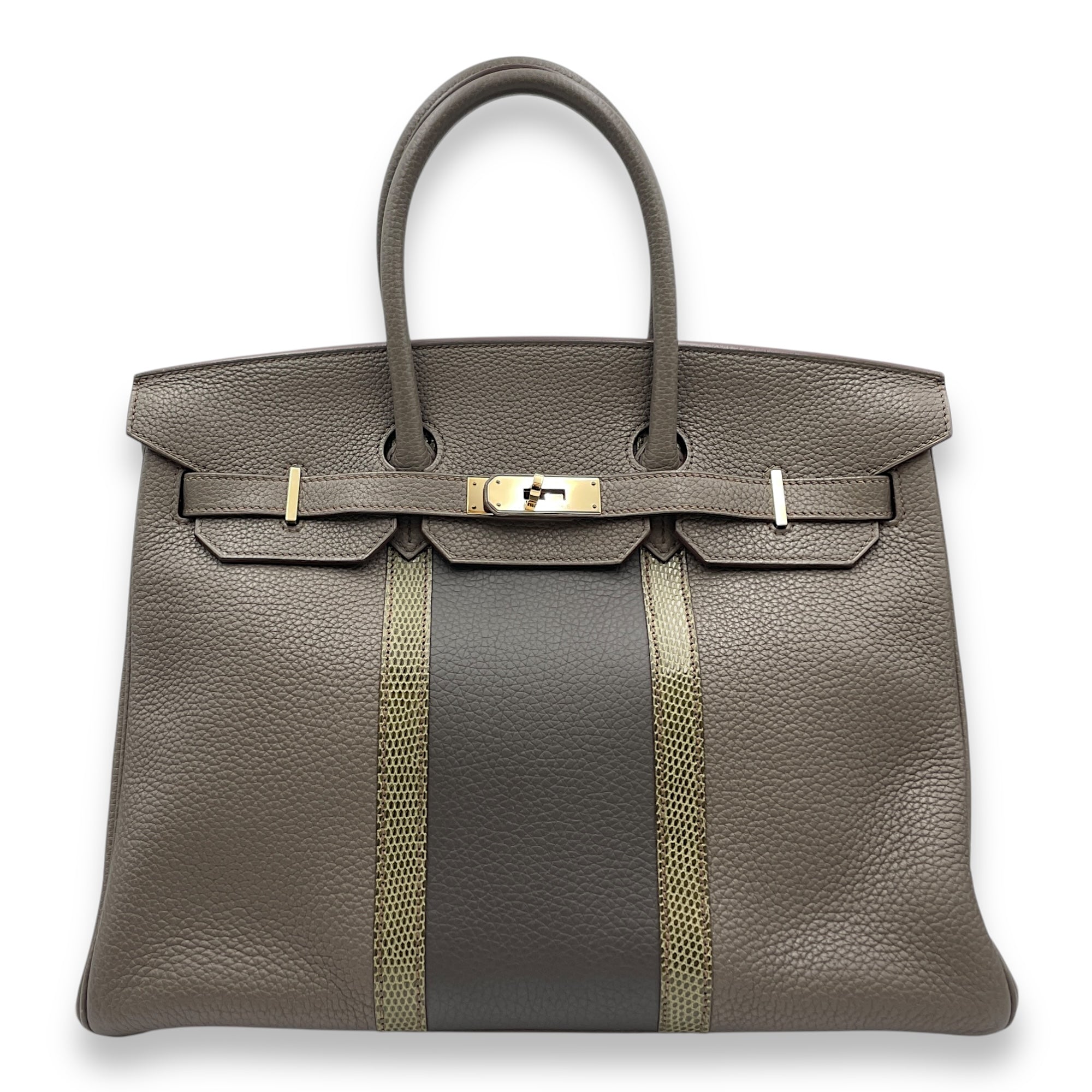 Birkin 35 Etain/Graphite/Gris Fonce in Clemence/Lizard, Permabrass hardware