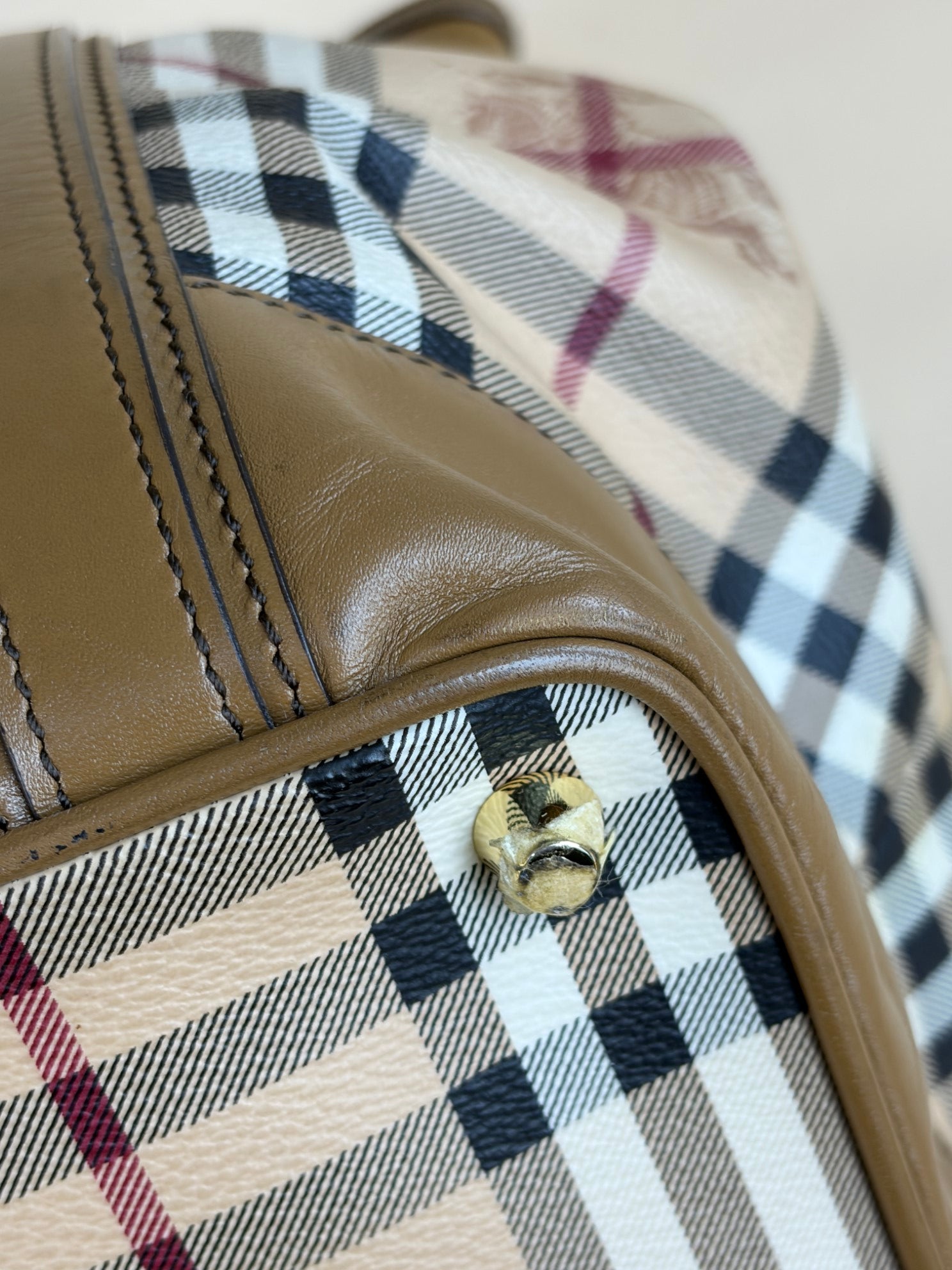 • Material: Beige Haymarket Check Coated Canvas and Leather Trim