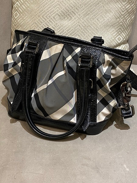Burberry Bicolor Beat Check Nylon Lowry Tote Bag