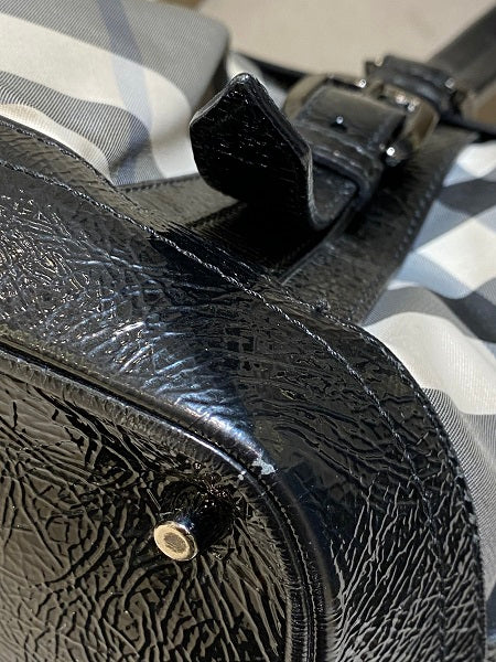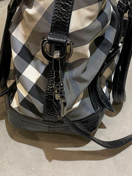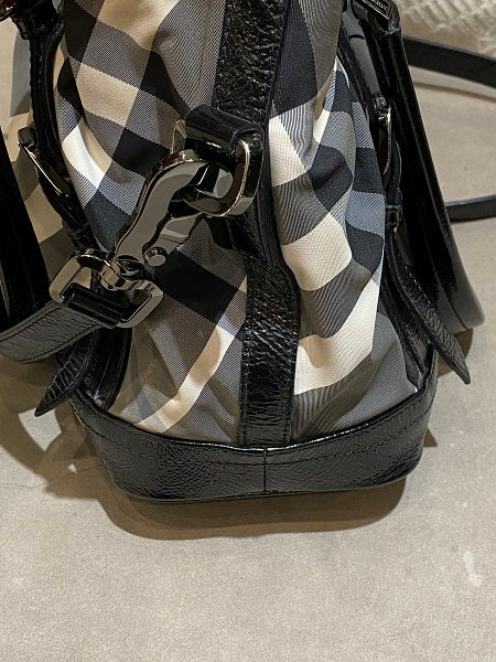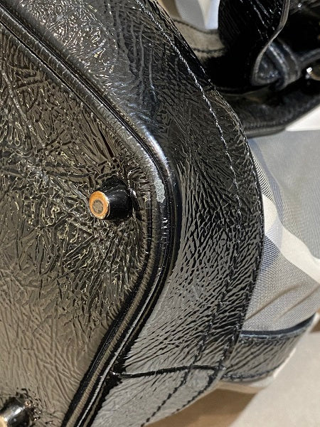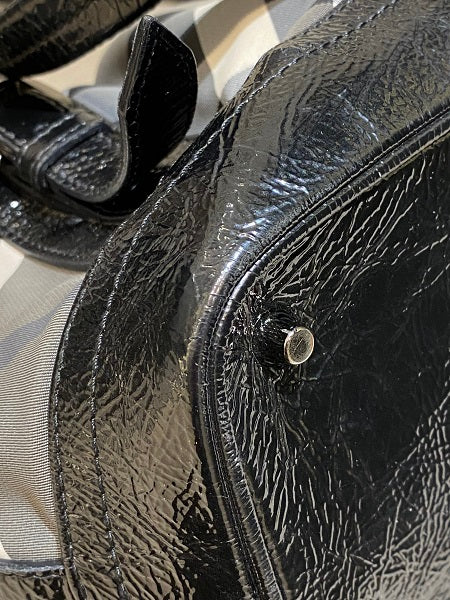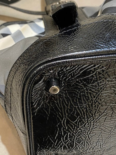 • Material: Black/White Check Nylon with Black Patent Leather Trim