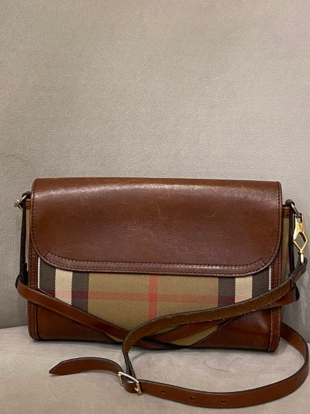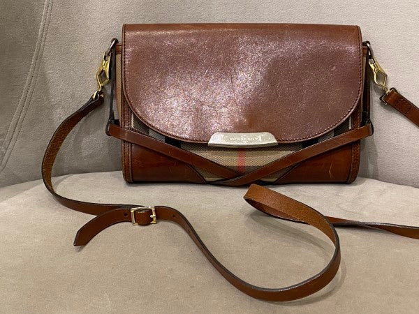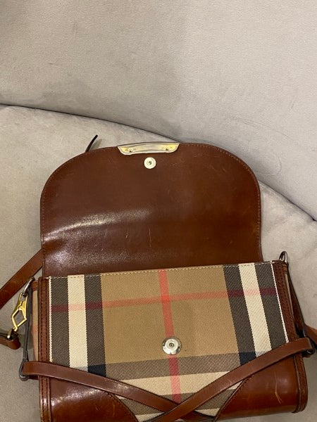 Burberry Brown House Check Bridle Abbott Crossbody Bag