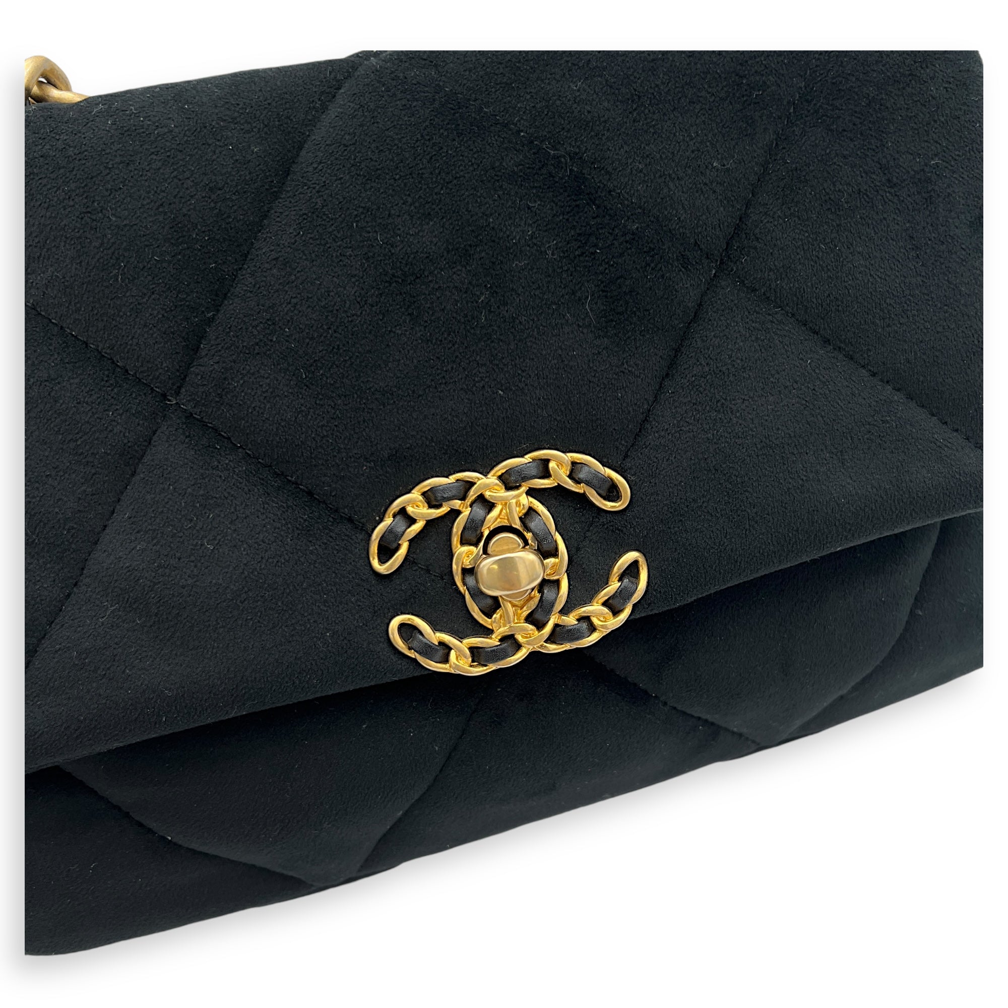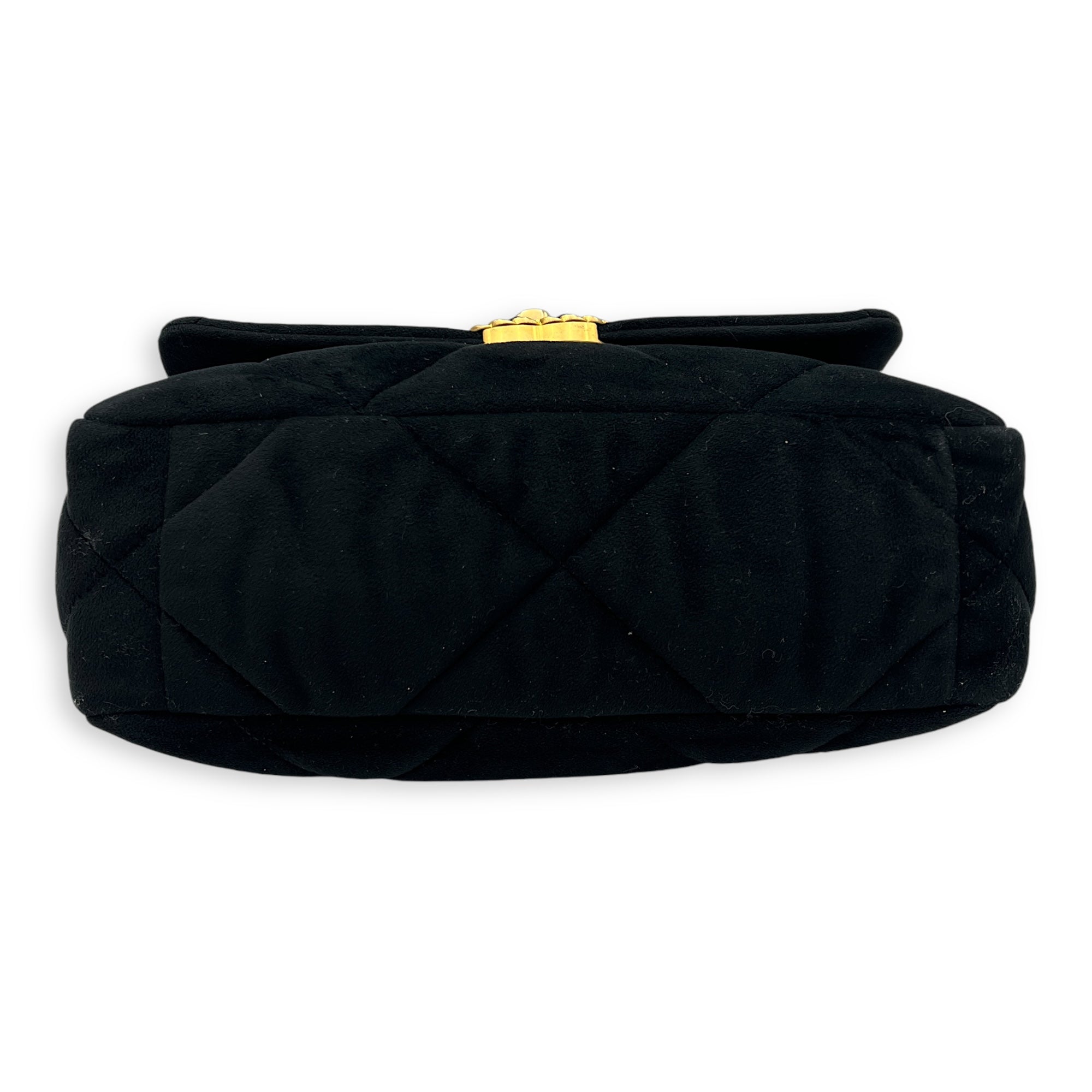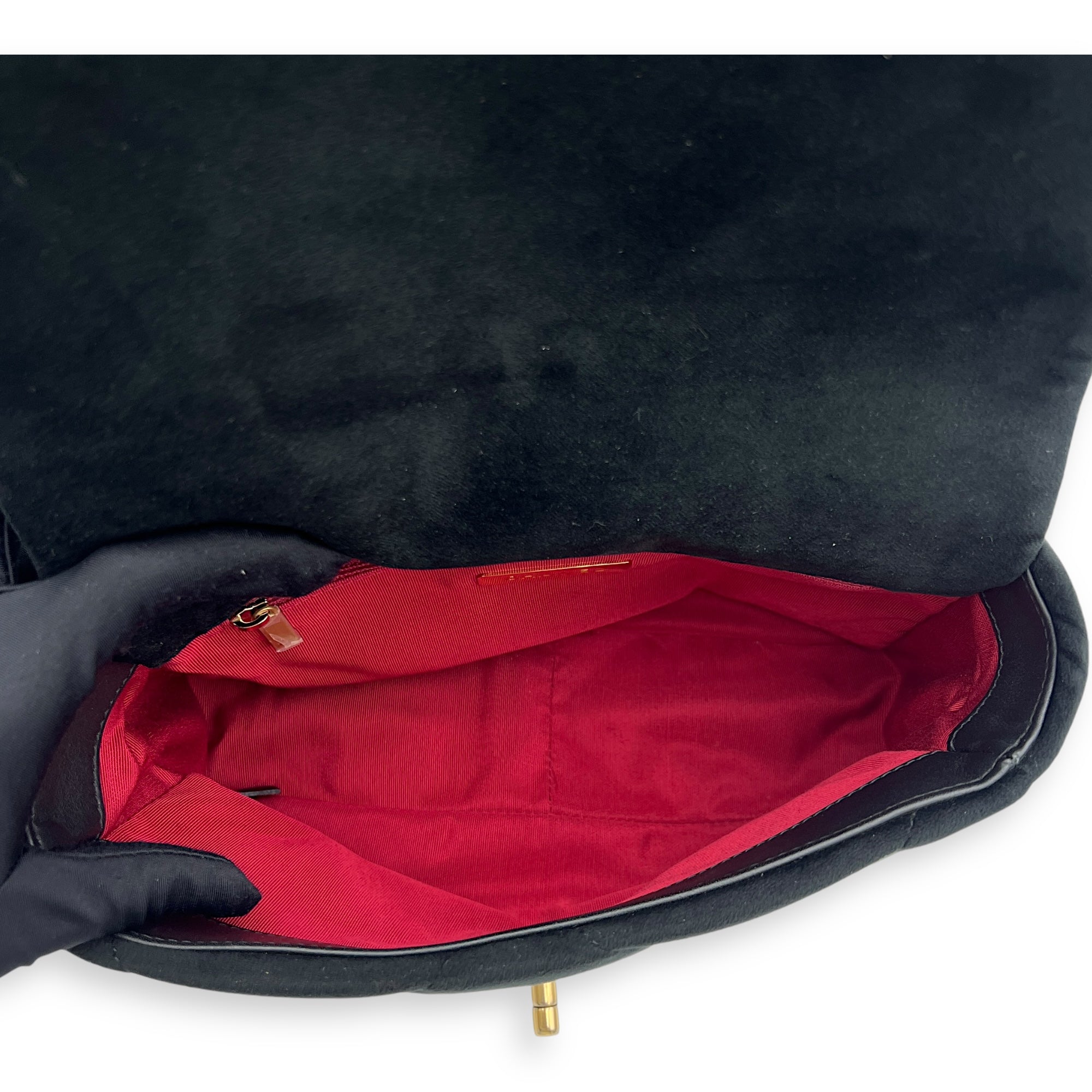 C19 Small Black Shoulder Bag in Velvet, Mixed hardware