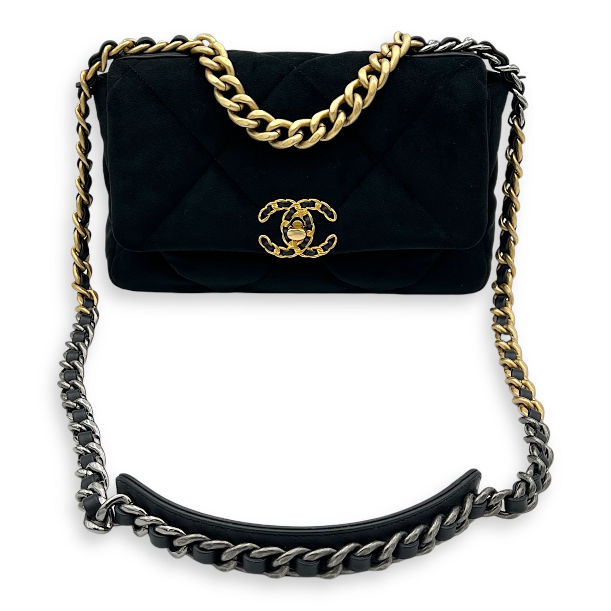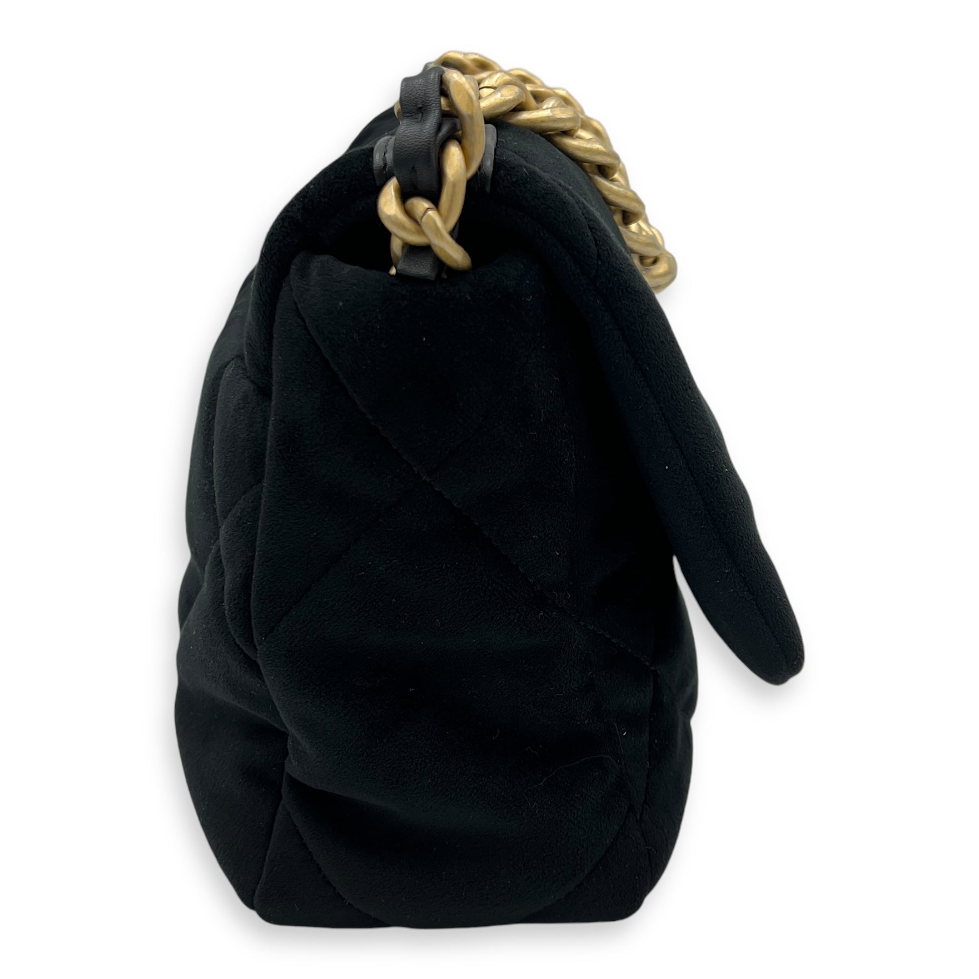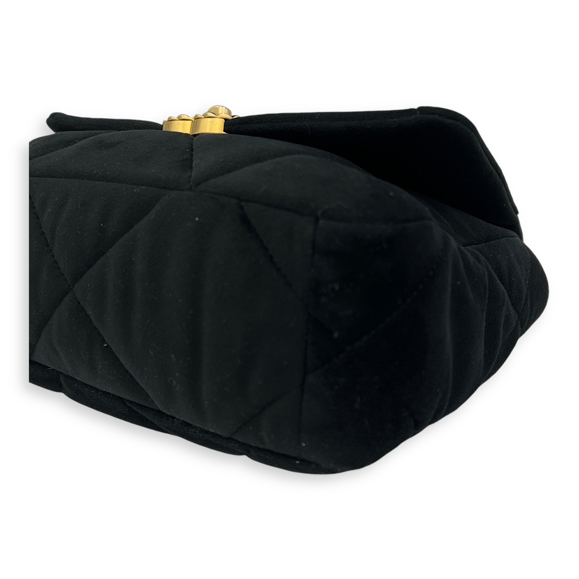 C19 Small Black Shoulder Bag in Velvet, Mixed hardware