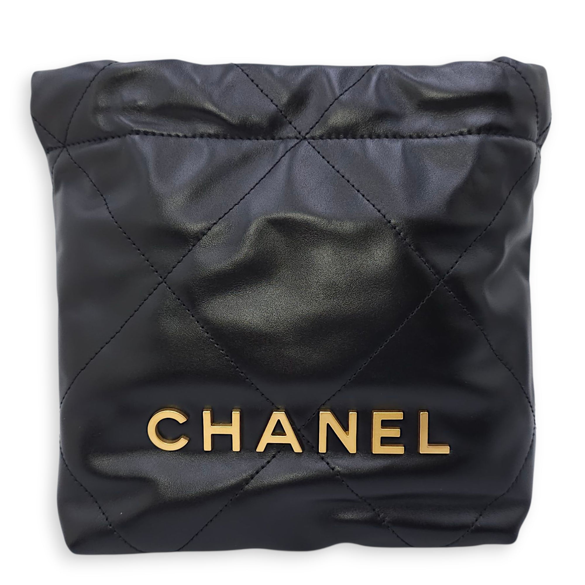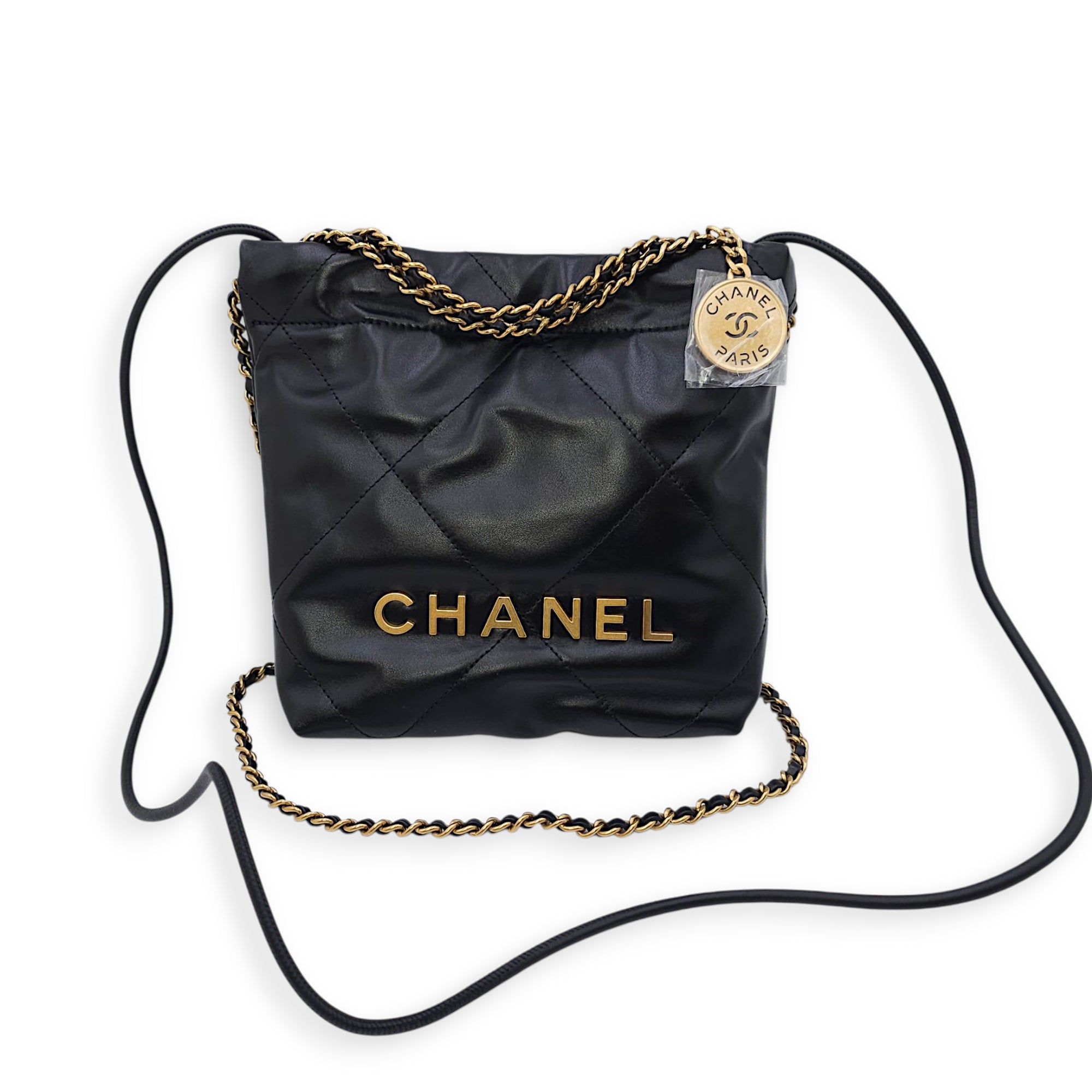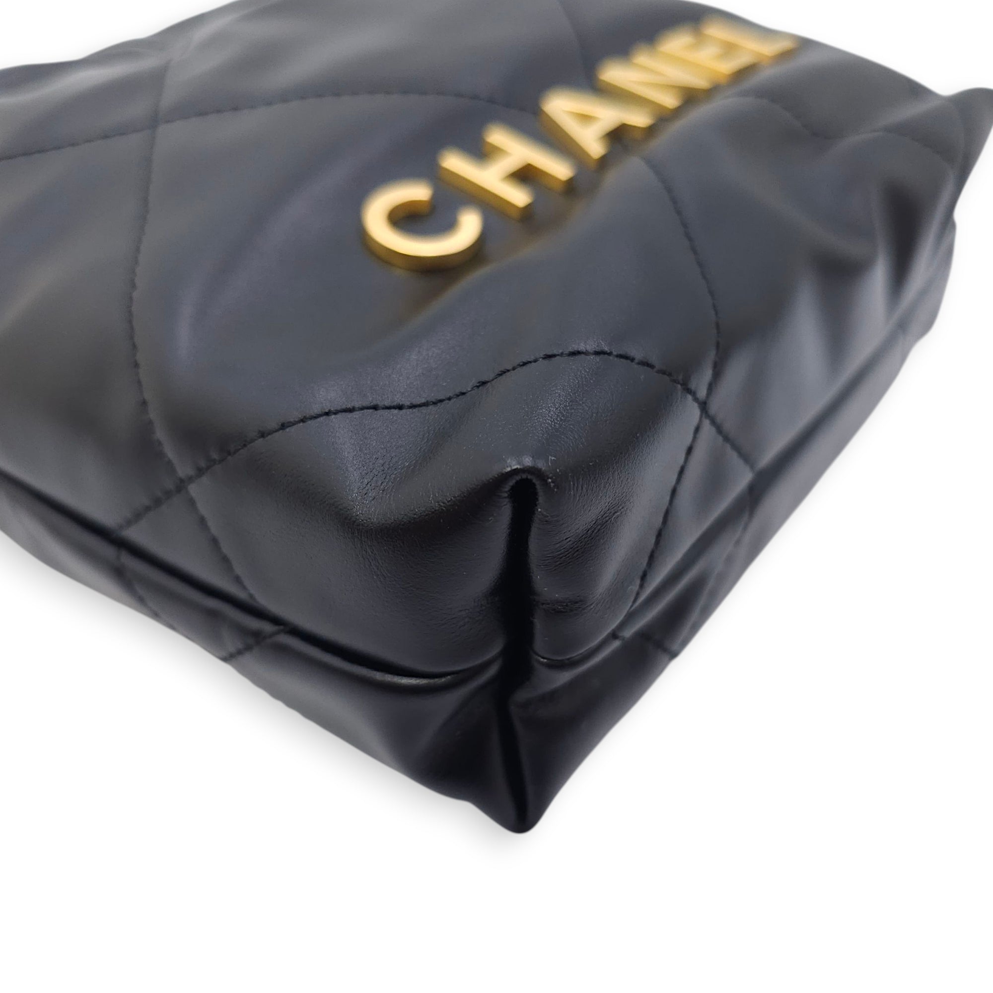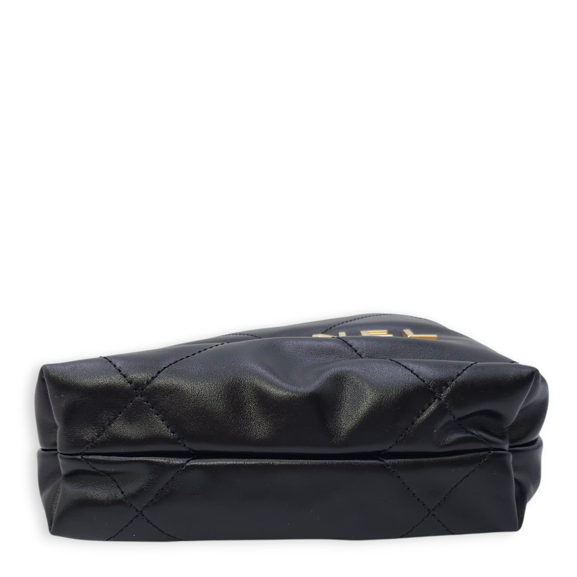 C22 Mini Black Shoulder Bag in Calfskin, Gold hardware