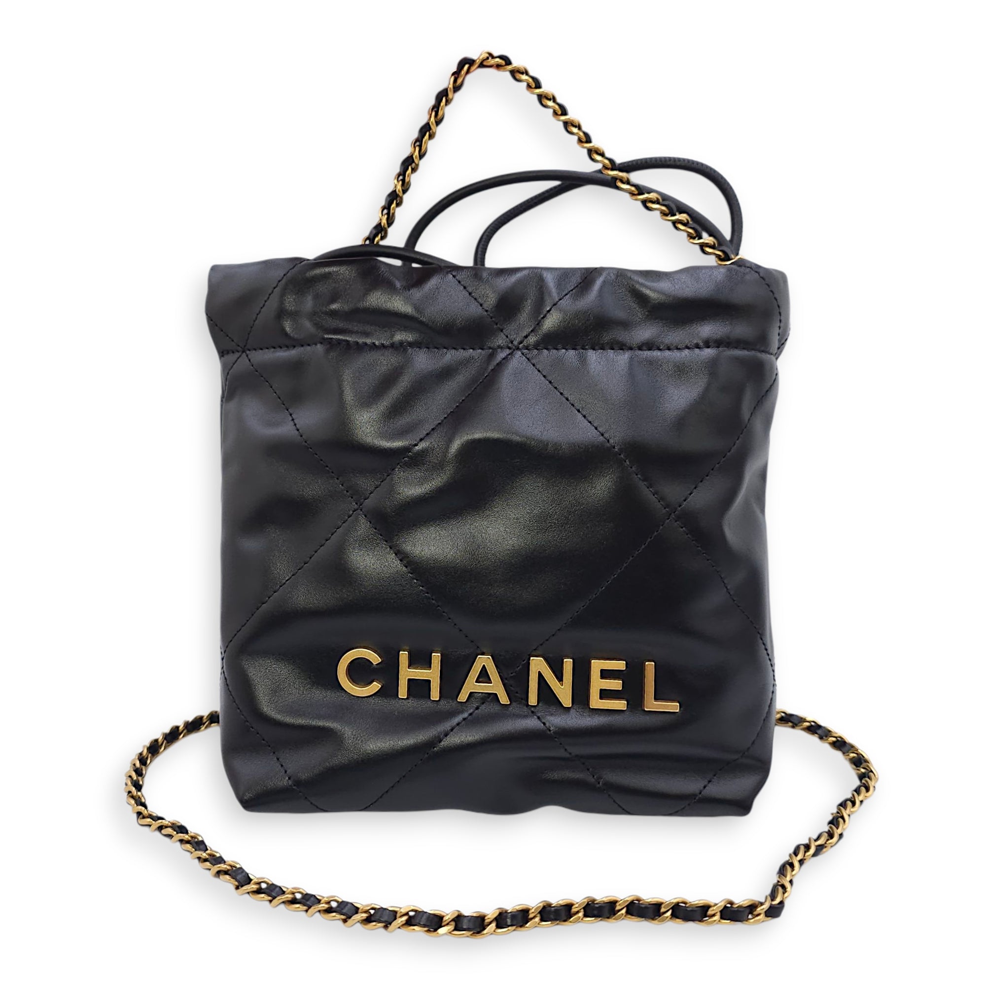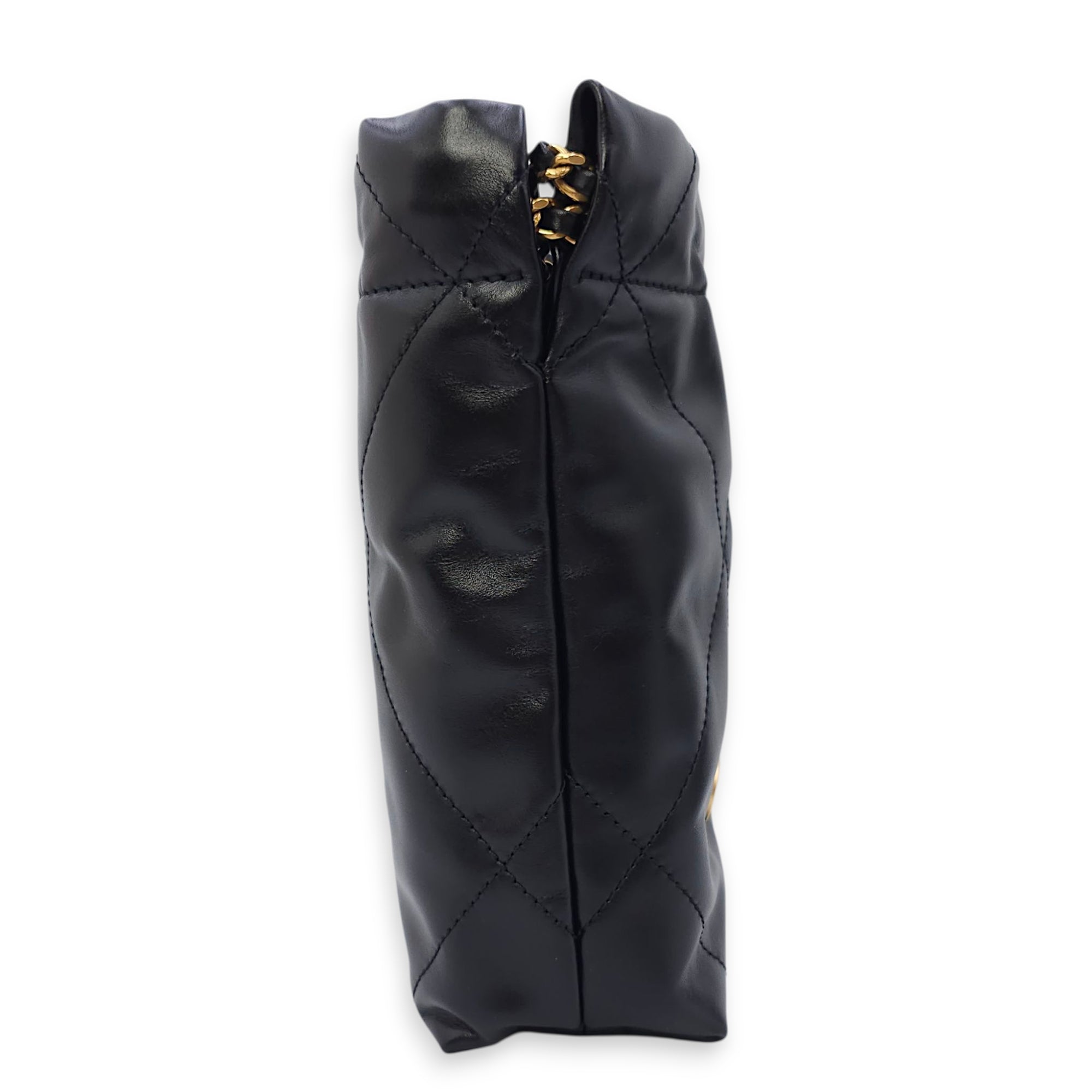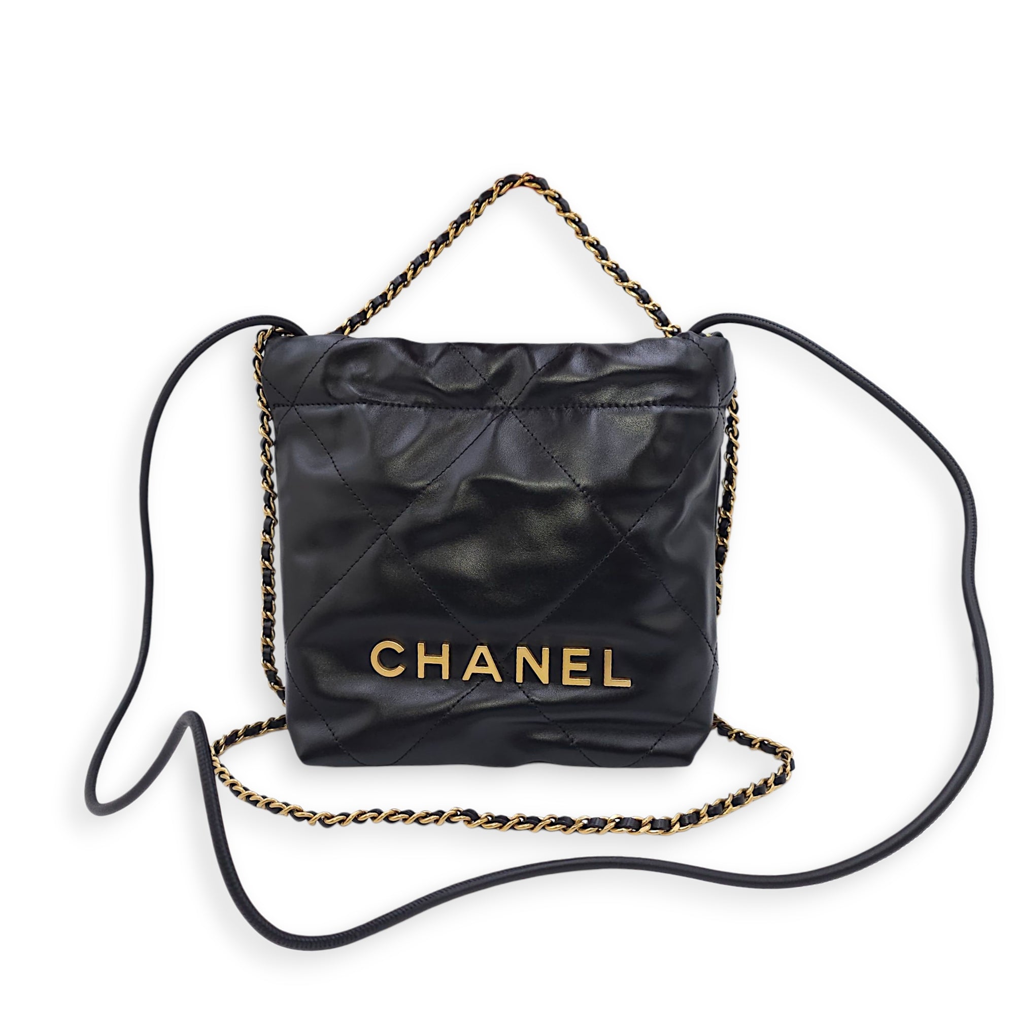 C22 Mini Black Shoulder Bag in Calfskin, Gold hardware