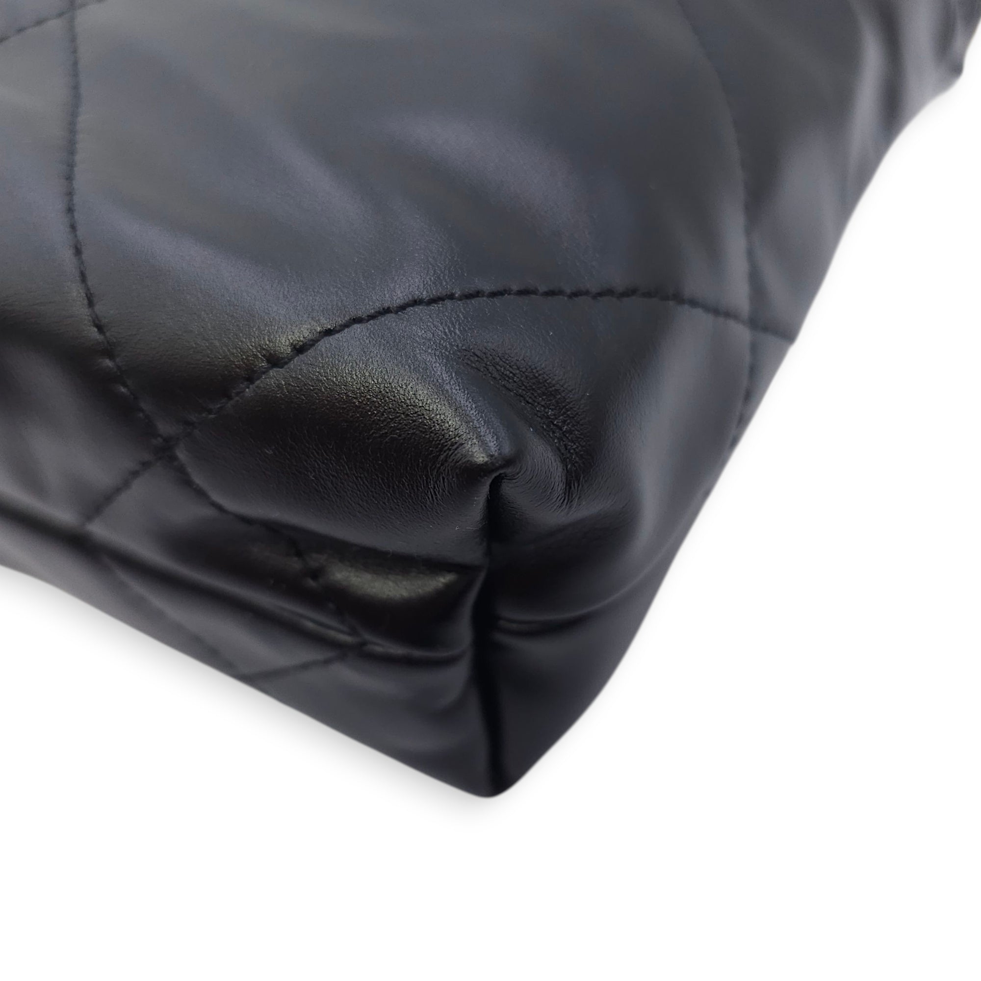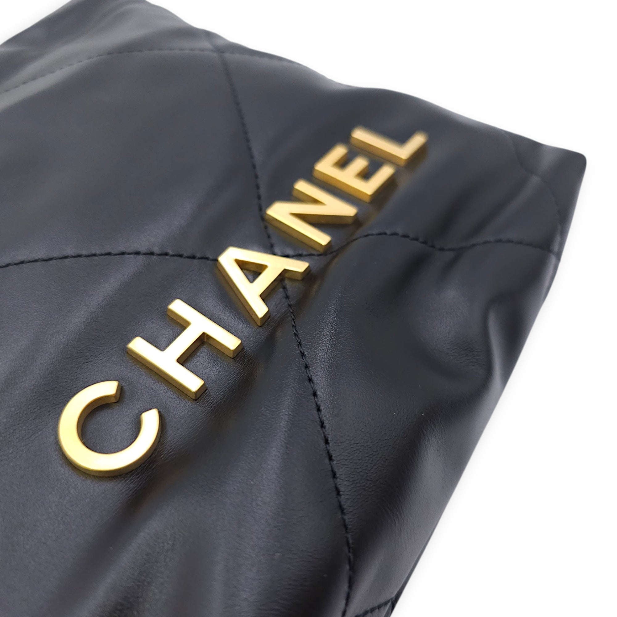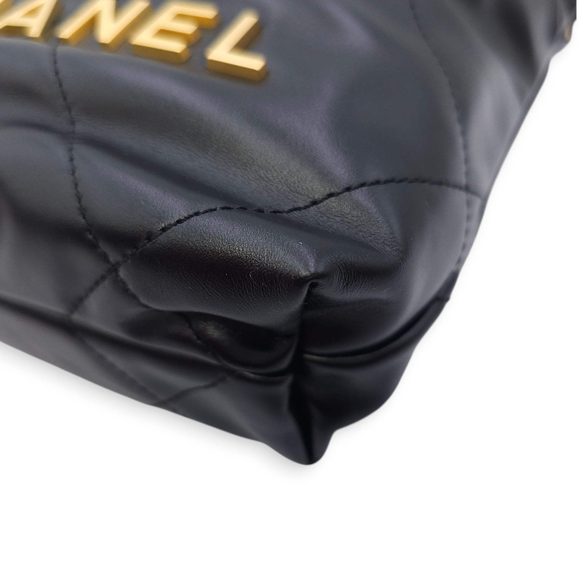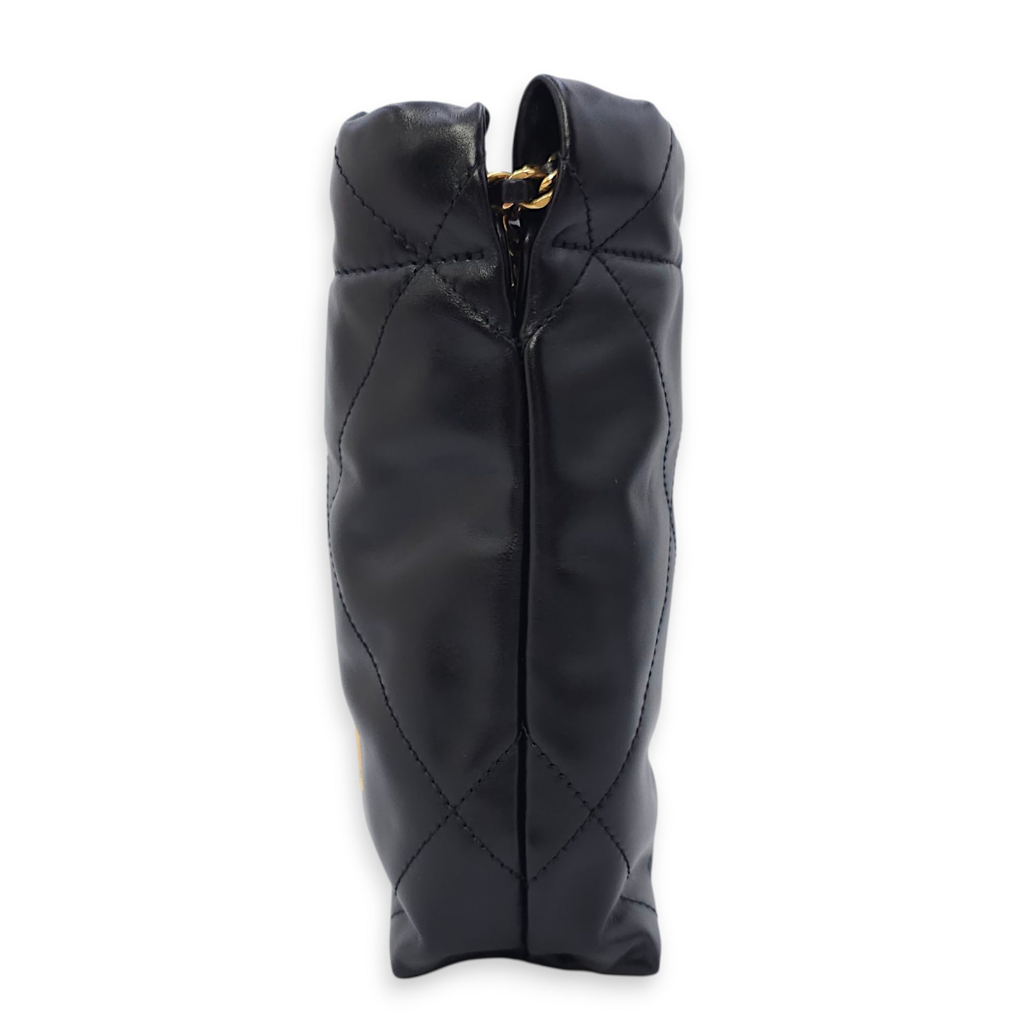 C22 Mini Black Shoulder Bag in Calfskin, Gold hardware
