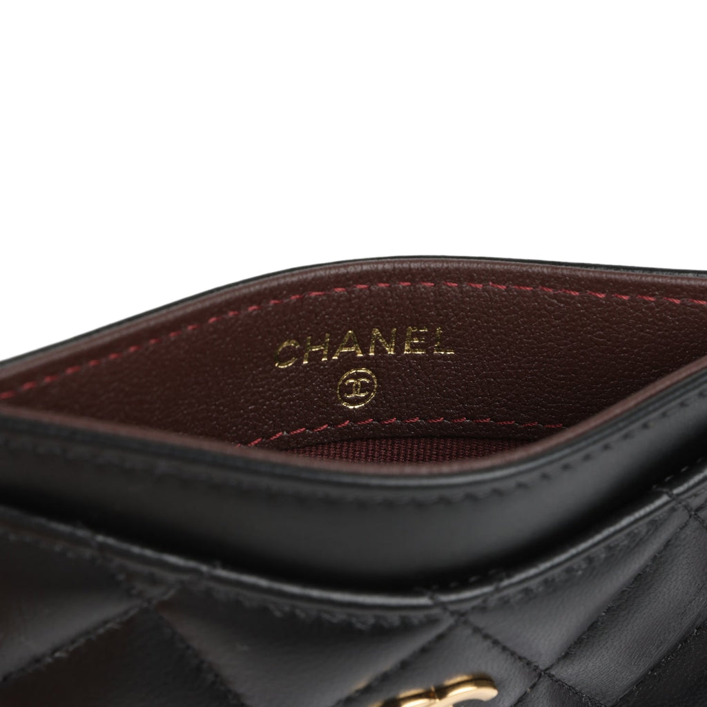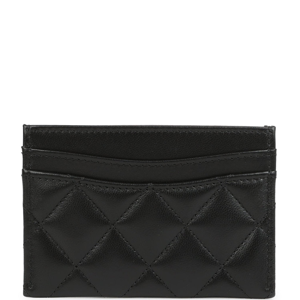 Chanel Classic Card Holder Wallet Black Lambskin Light Gold Hardware