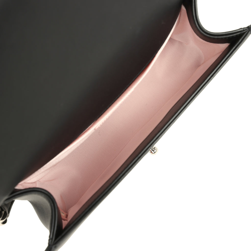 Chanel Medium Boy Bag Black Pearl Chevron Calfskin Silver Hardware