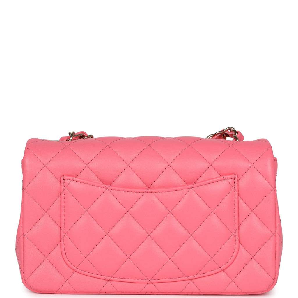 Chanel Mini Rectangular Flap Bag Hot Pink Lambskin Light Gold Hardware Shop for an authentic Chanel mini rectangular flap in hot pink lambskin leather with light gold tone hardware in never worn condition at Madison Avenue Couture.