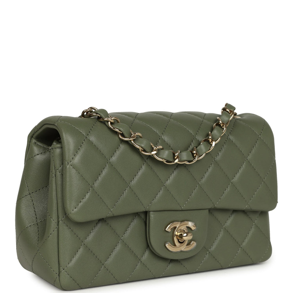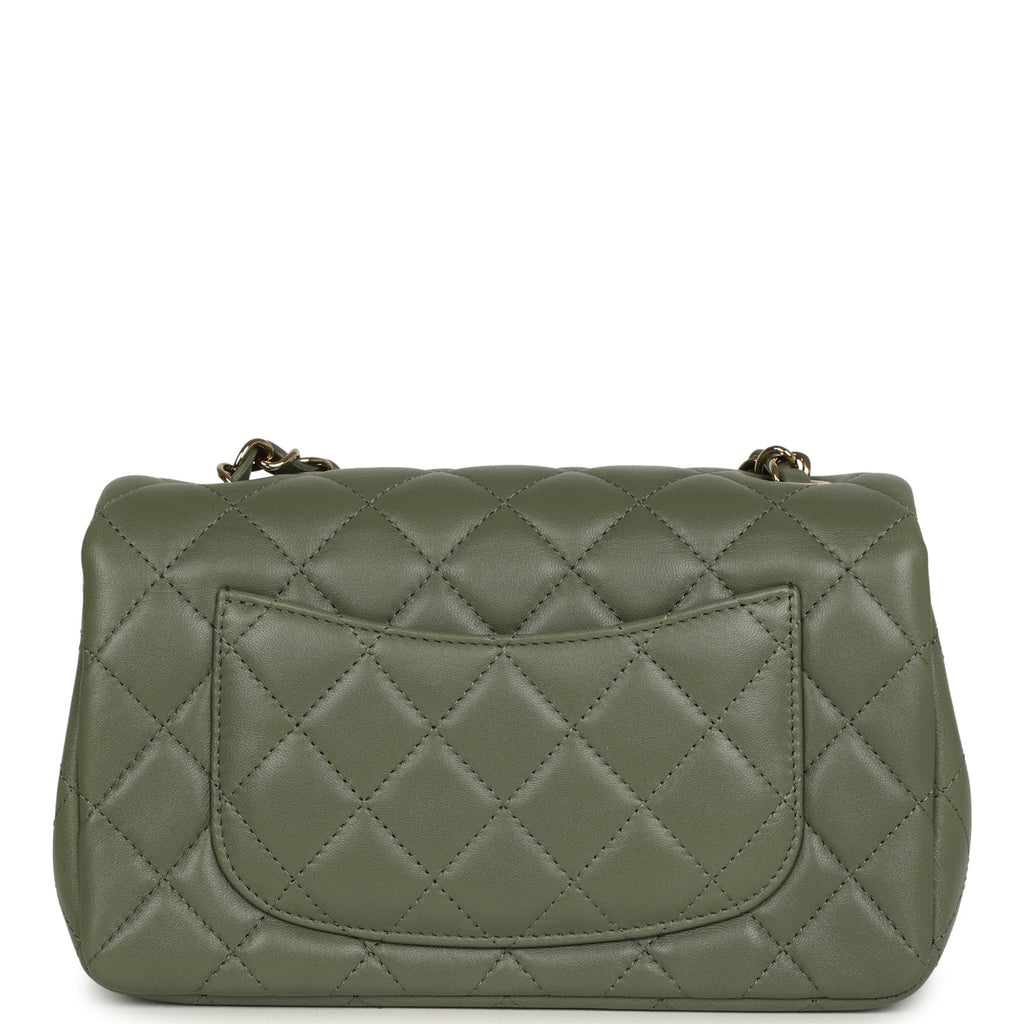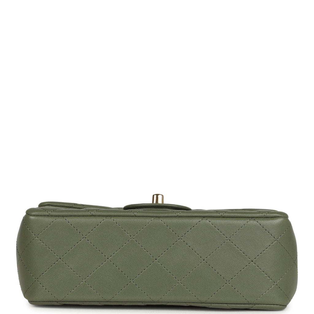 Chanel Mini Rectangular Flap Bag Khaki Lambskin Light Gold Hardware