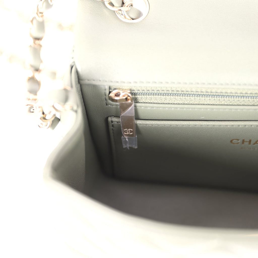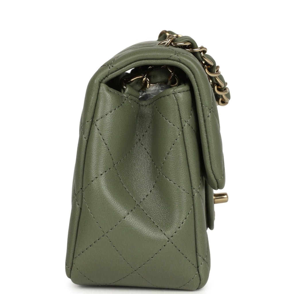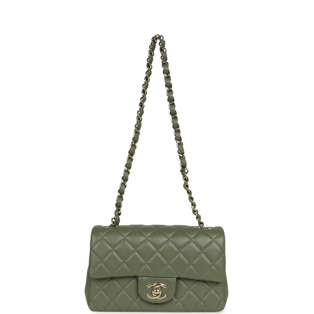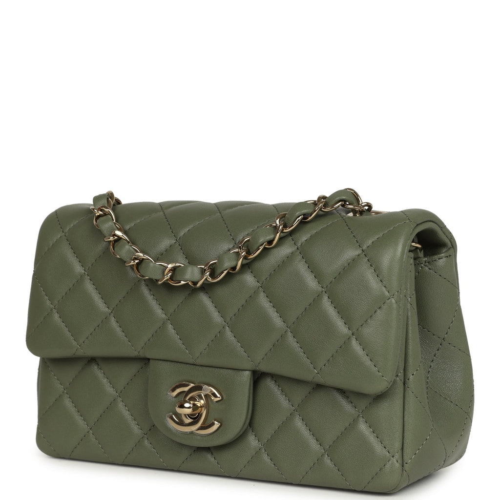 Chanel Mini Rectangular Flap Bag Khaki Lambskin Light Gold Hardware