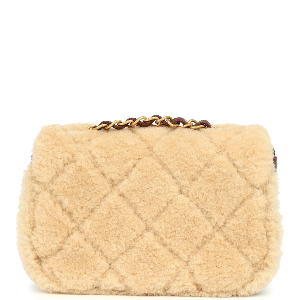 Chanel Mini Shearling Flap Bag Brown Lambskin Brushed Gold Hardware Shop for an authentic Chanel Mini Shearling Flap in brown lambskin and shearling with brushed gold hardware in new and never worn condition at Madison Avenue Couture.
