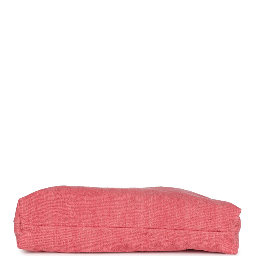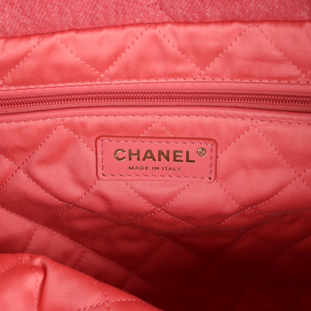 Chanel Small 22 Bag Light Red Washed Denim Gold Hardware Shop for an authentic Chanel Small 22 bag of light red washed denim with gold tone hardware in new and never worn condition at Madison Avenue Couture.