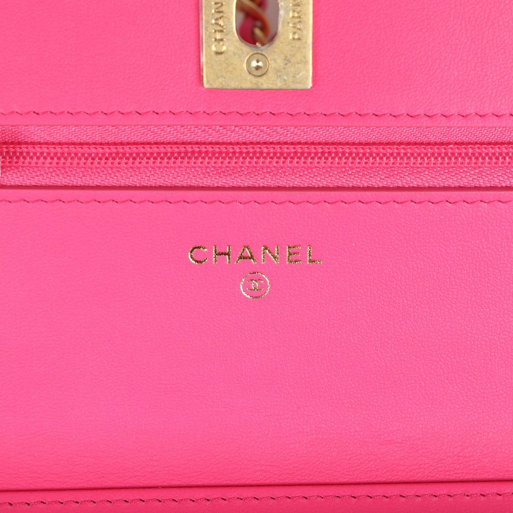 Chanel Wallet on Chain WOC Fuchsia Caviar Antique Gold Hardware