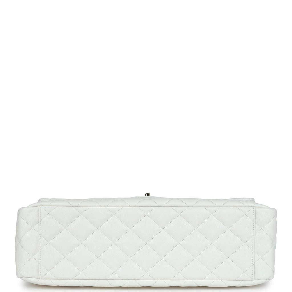 Chanel XXL Classic Single Flap Bag White Shiny Caviar Light Gold Hardware