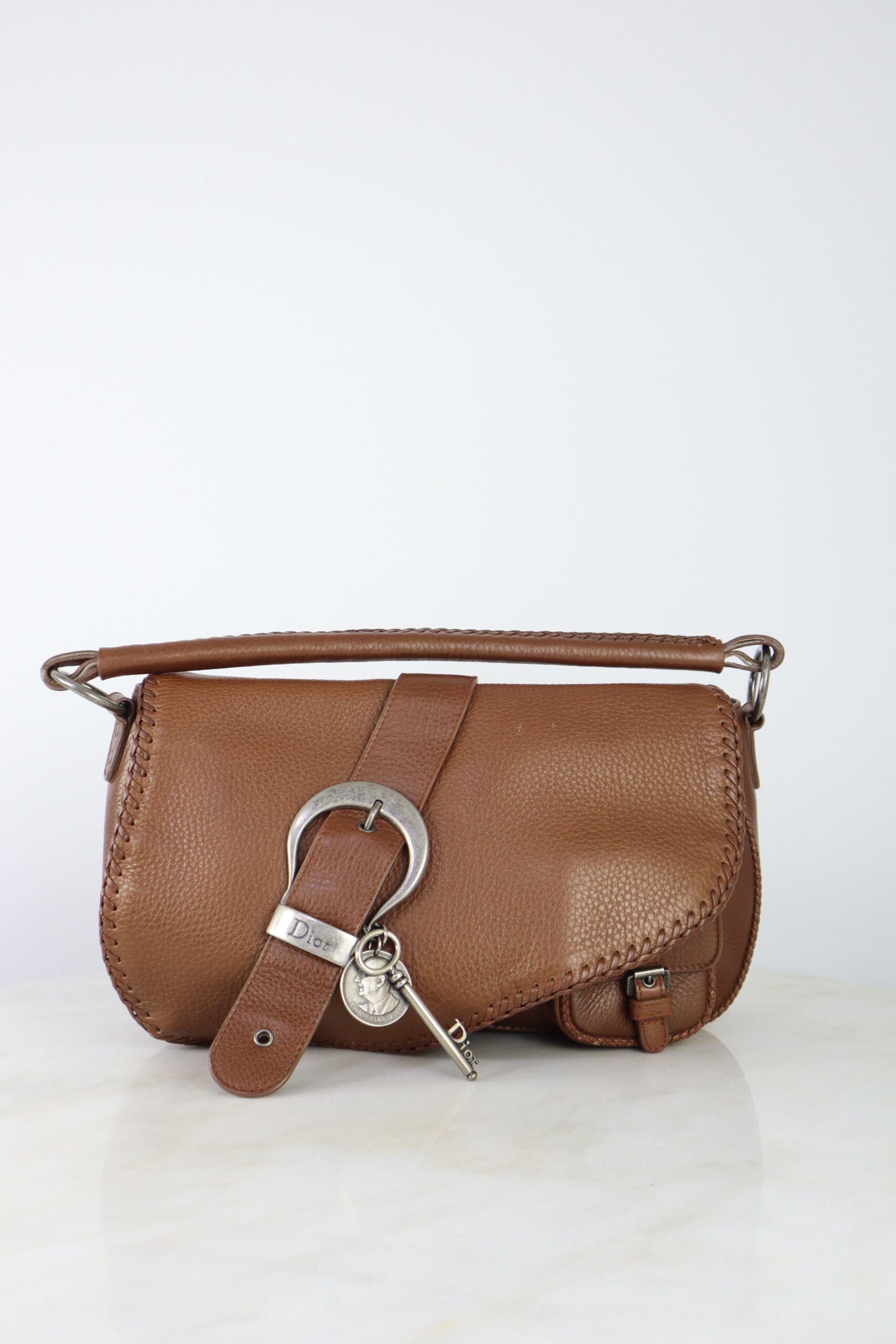 Christian Dior Brown Gaucho Whipstitch Hobo Saddle Bag
