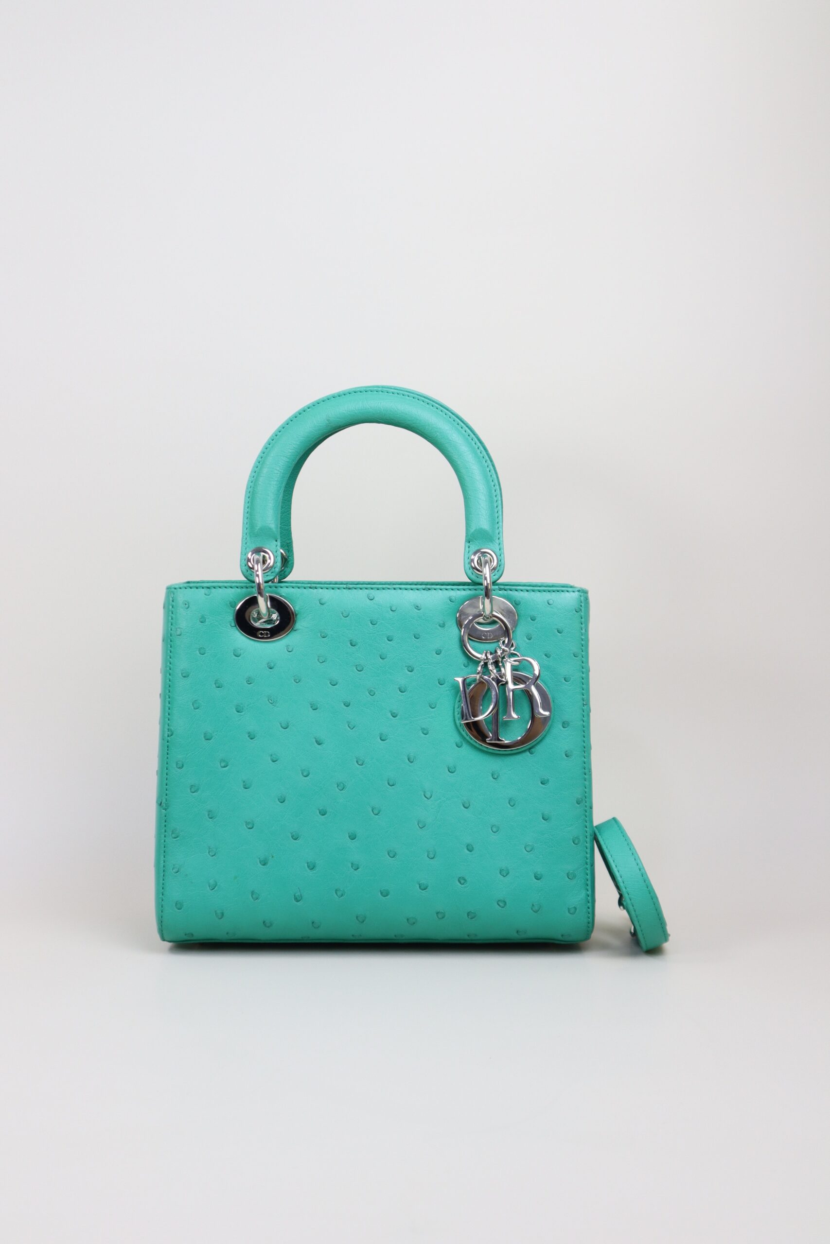 Christian Dior Mint Green Ostrich Medium Lady Dior Tote Bag