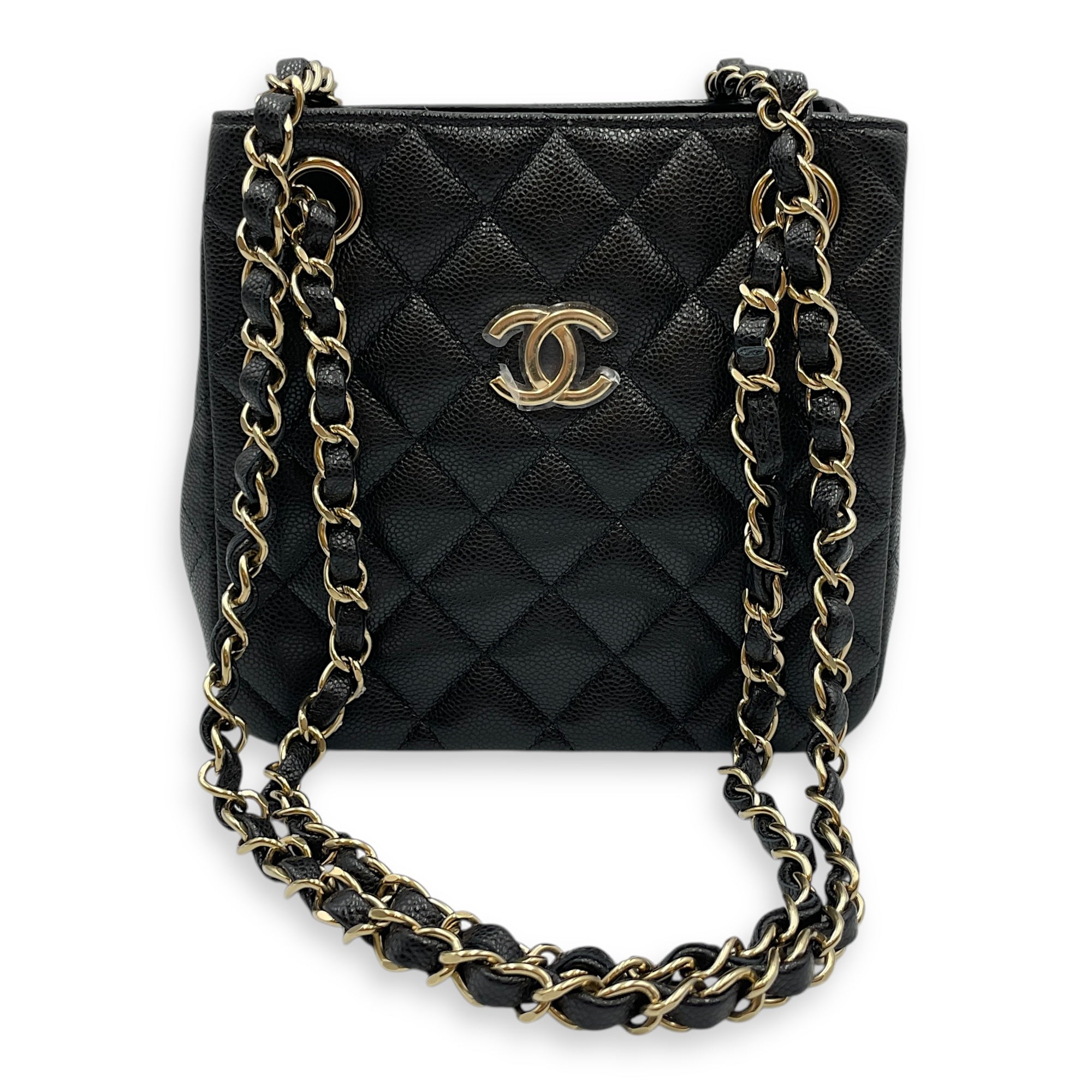 Classic Mini Black Bucket Bag in Caviar Leather, Gold hardware