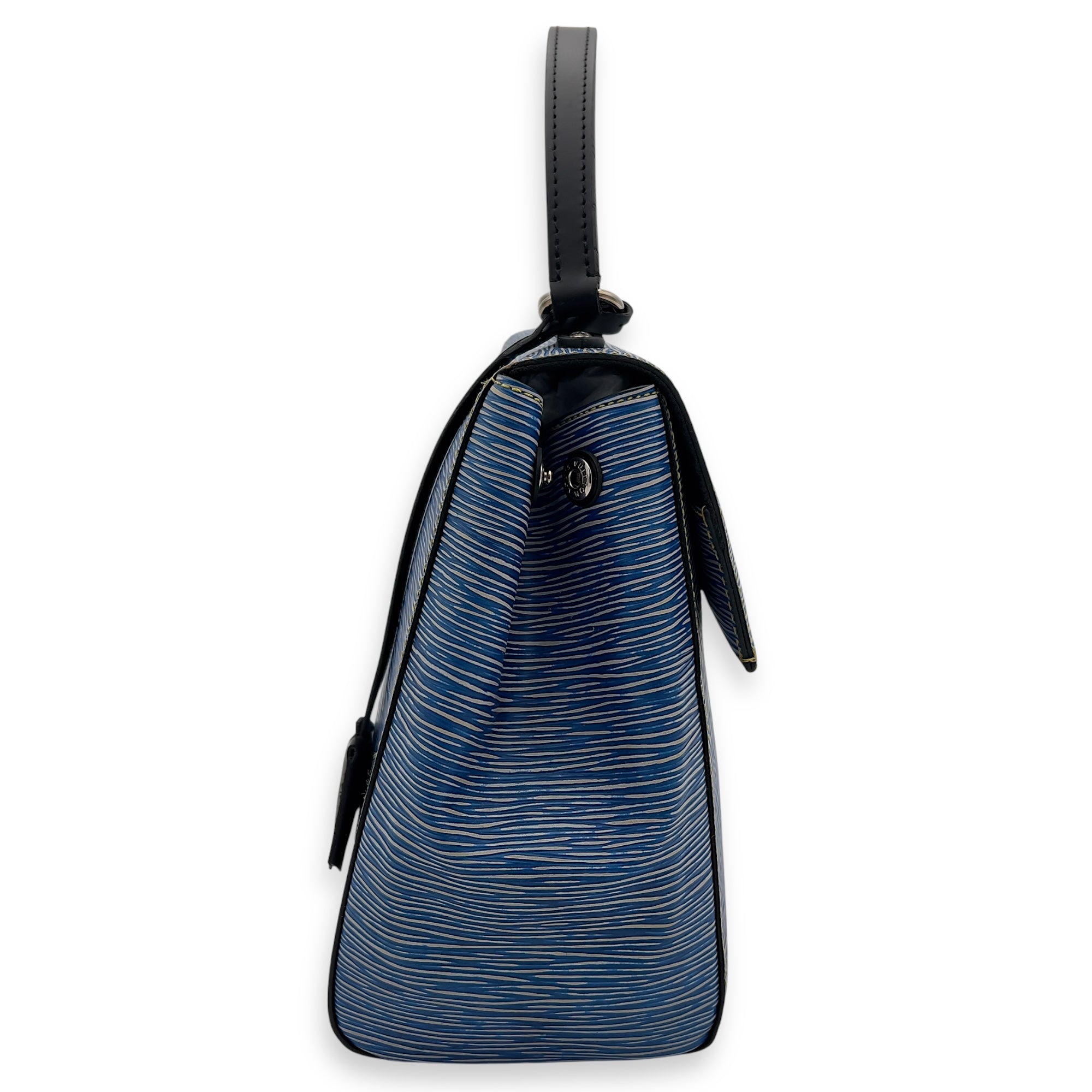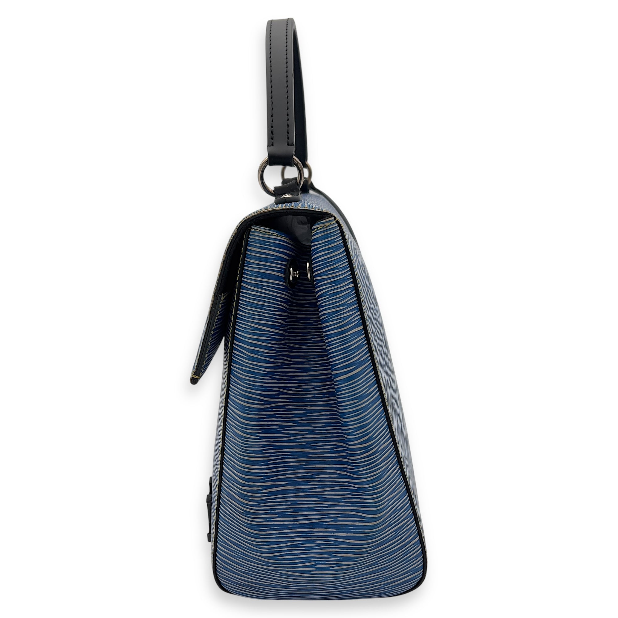 Cluny MM Blue Top Handle Bag in Epi Leather, Silver hardware