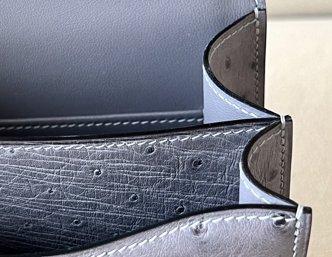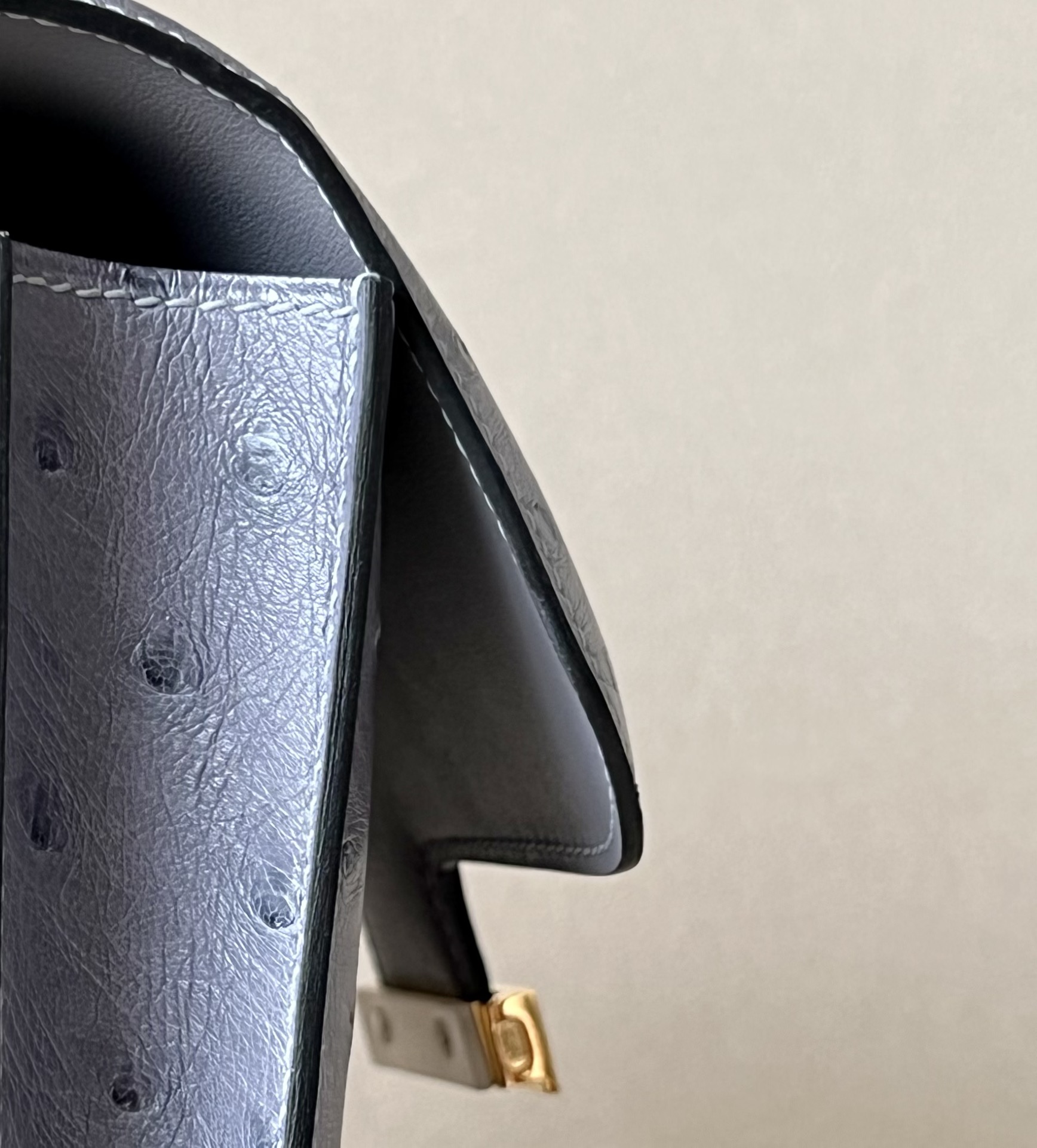 Constance 19 Ostrich Gris Agate (82) Gold Hardware