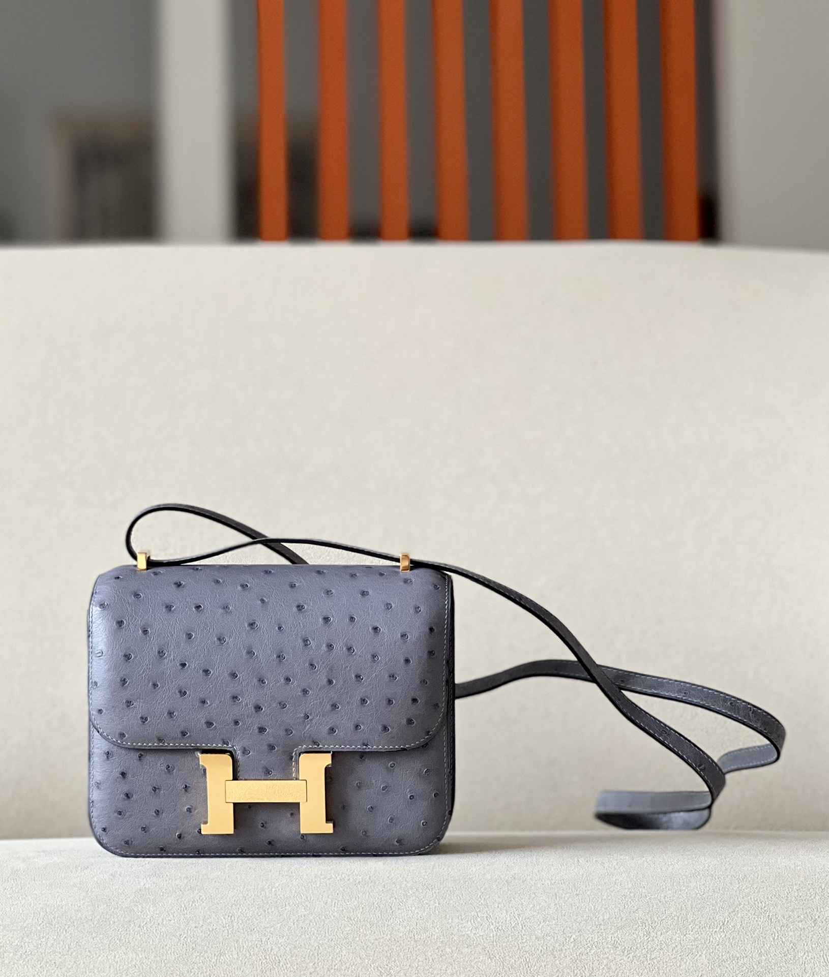Be the first to review “Constance 19 Ostrich Gris Agate (82) Gold Hardware”