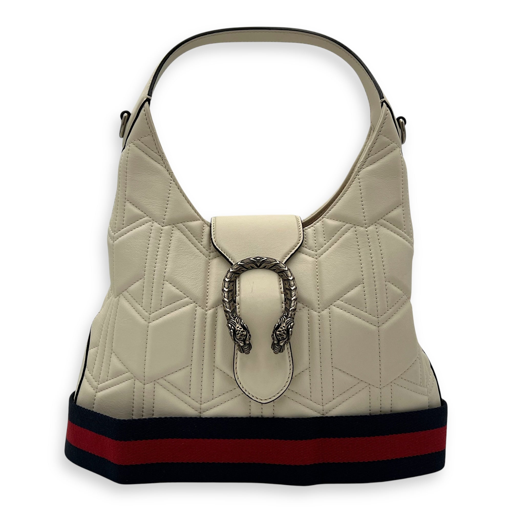 Dionysus Shoulder Bag White in Calfskin, Silver hardware