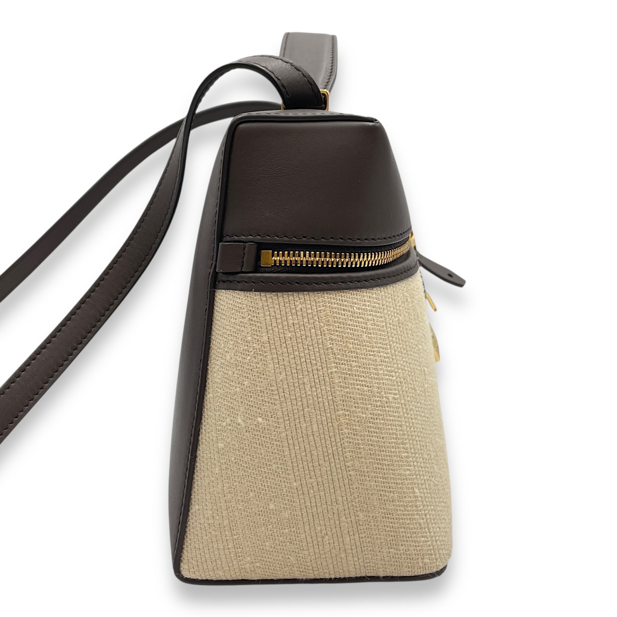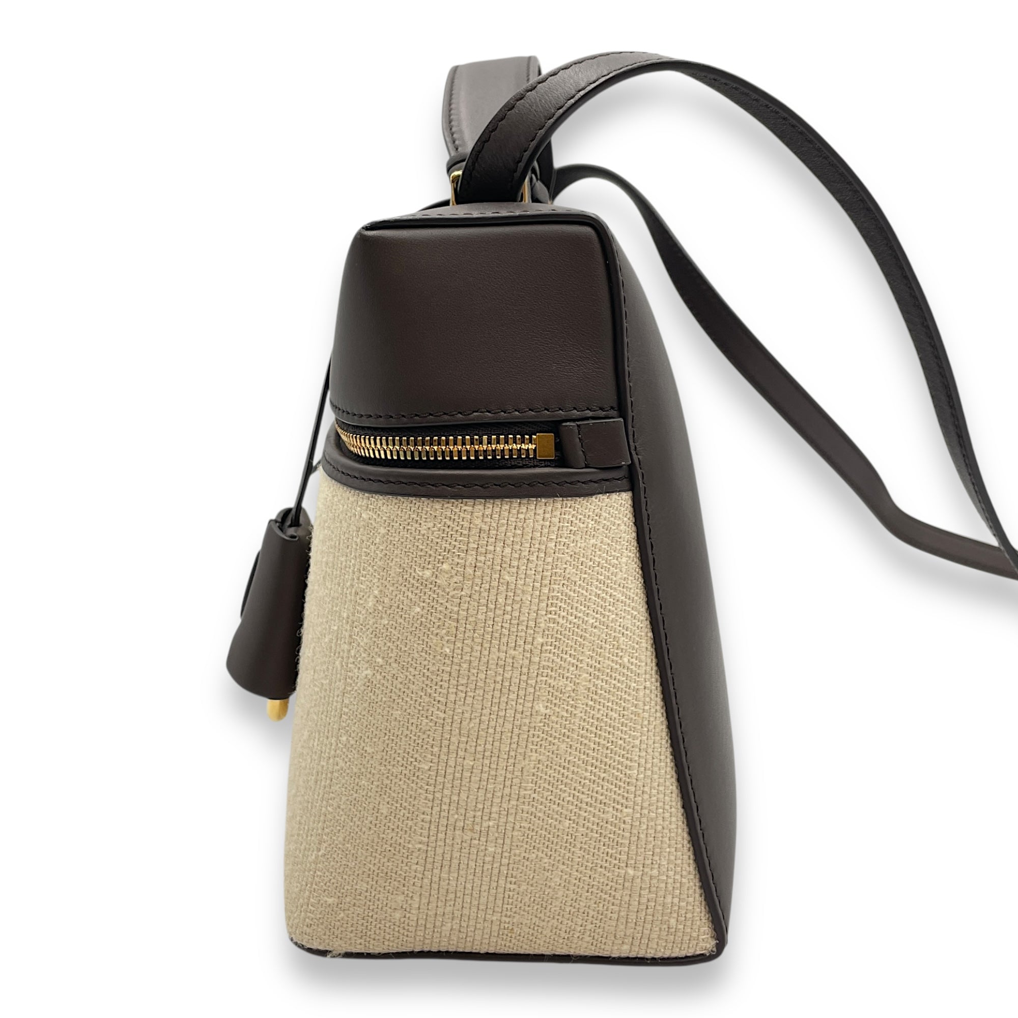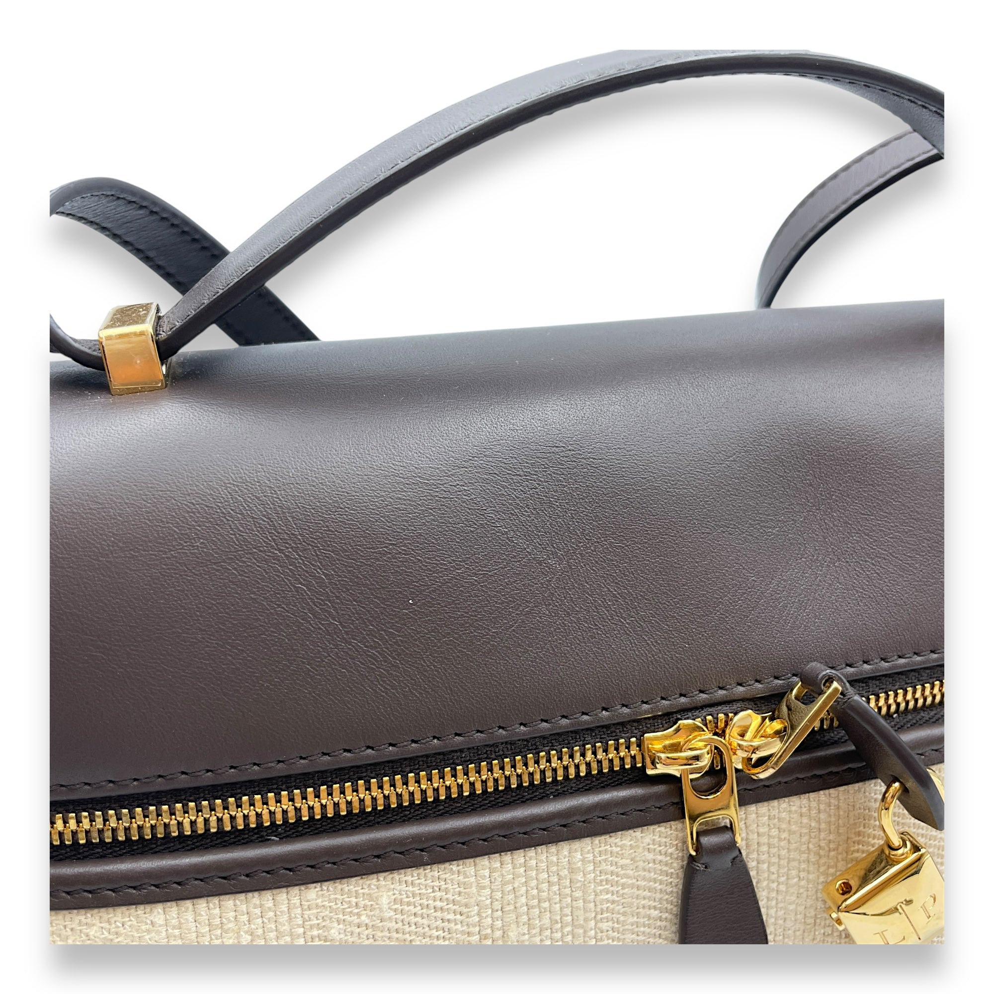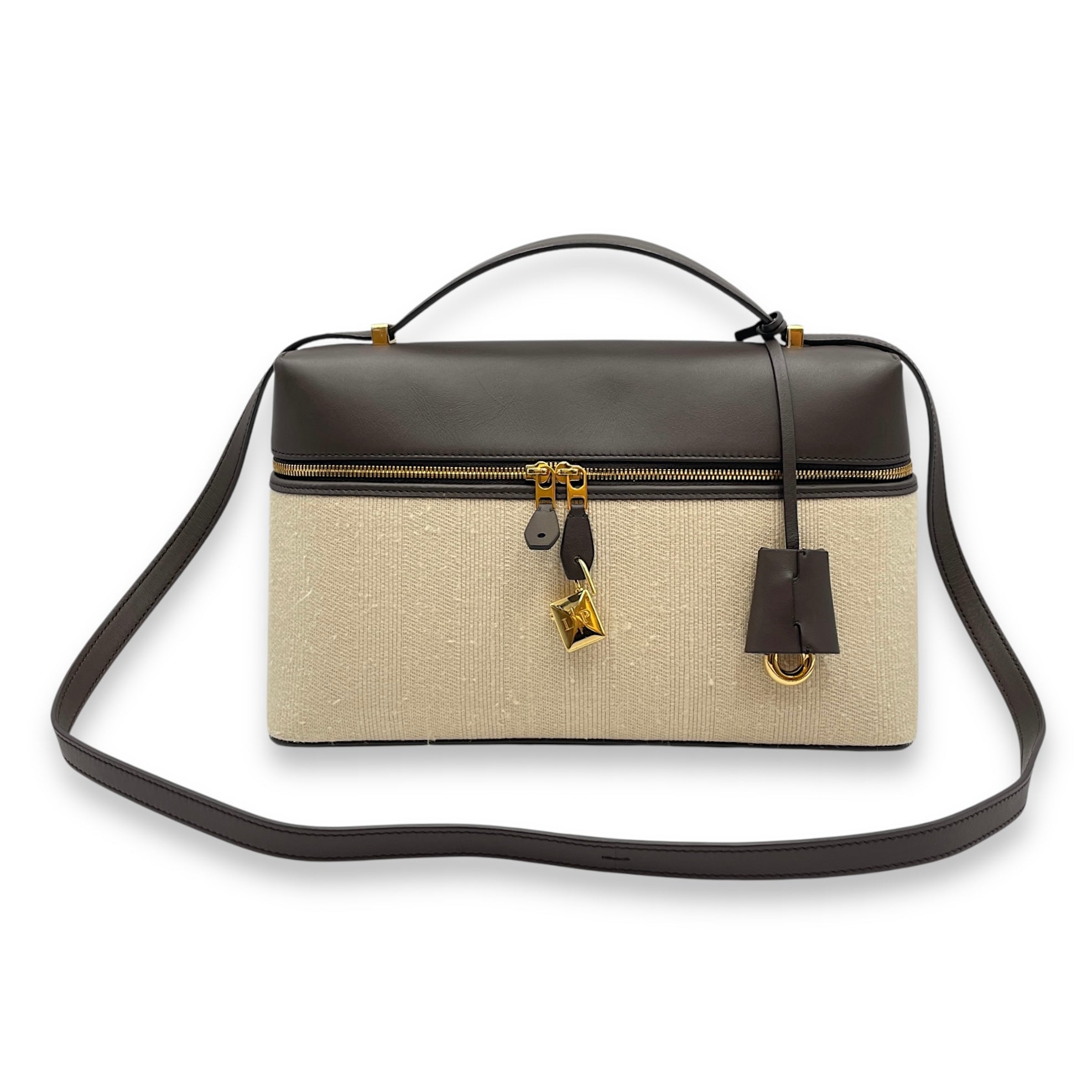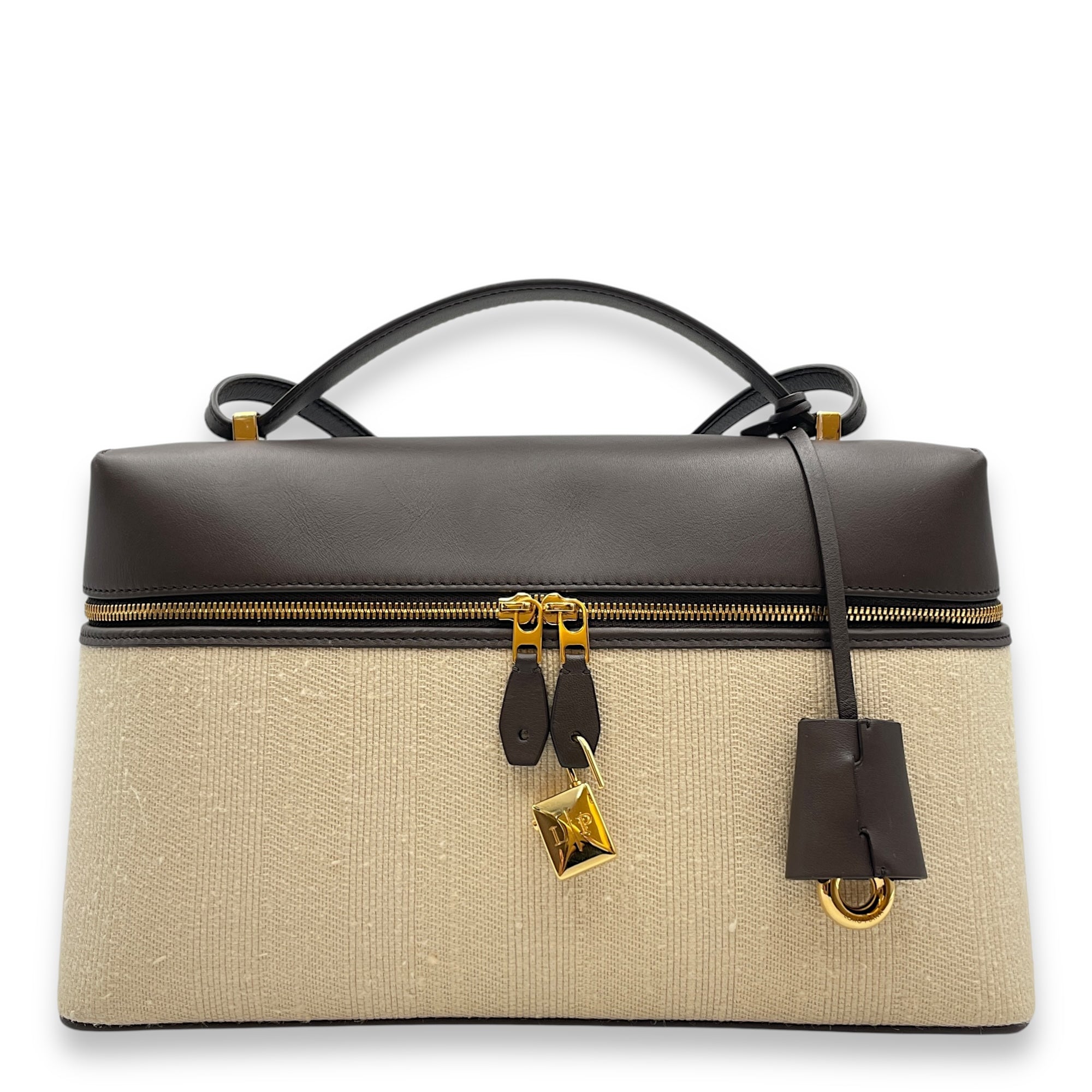 Extra Pocket 27 Silk Milk Amber-Dark Chocolate Shoulder Bag in Silk, Gold hardware