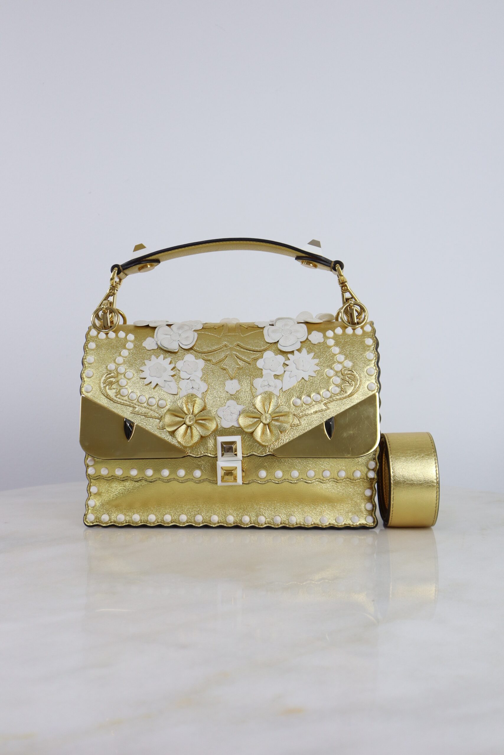 Be the first to review “Fendi Bicolor Floral Metallic Kan I Monster Shoulder Bag”
