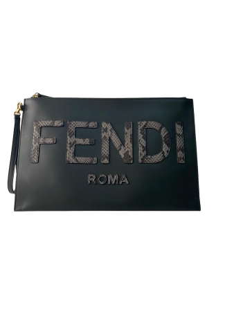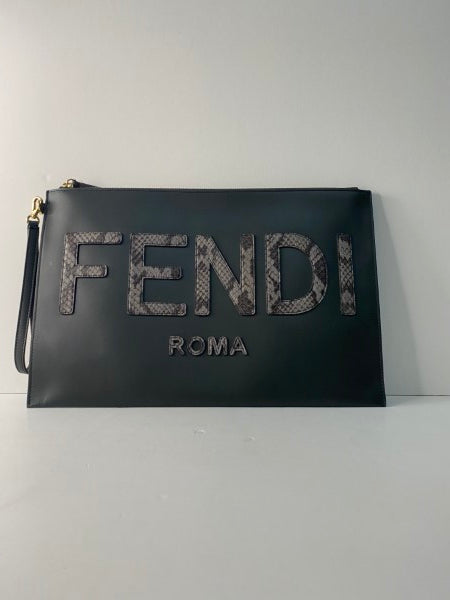 • Material: Dark Grey Leather with FENDI ROMA Lettering Python Print