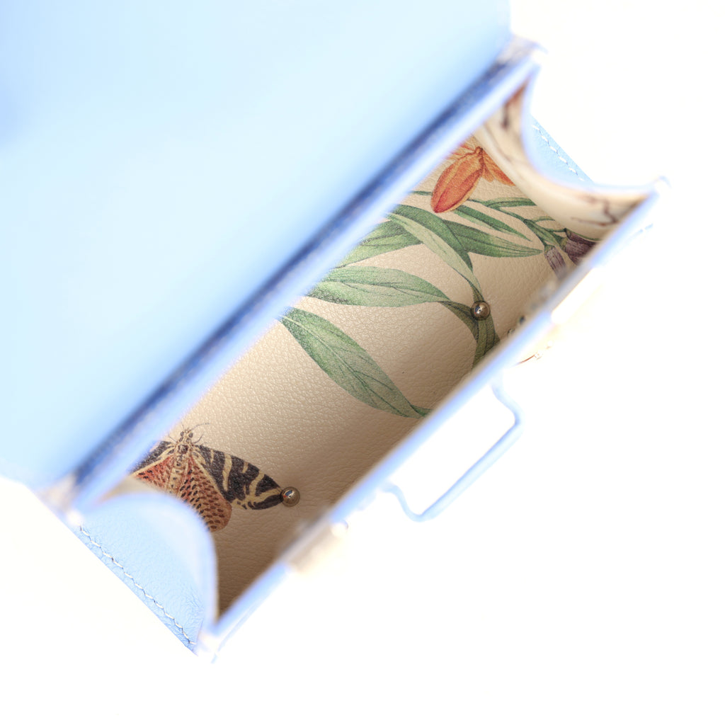 This 2024 Limited Edition Goyard Saigon Structure Nano Bag is in Iris Goyardine coated canvas and chevroches calfskin lining with palladium hardware, contrast stitching, wooden top handle, and a detachable shoulder strap.The interior is lined in multicolored floral printed goatskin lining and has one interior slip pocket on rear wall.Origin: FranceCondition: New and never worn (plastic on hardware)Accompanied by: Goyard box, dustbag, strap, strap dustbag, carebook, ribbon and feltMeasurements: 5.7” x 4.5″ x 2.75″; 2.25″ handle, 18-22″ shoulder strap