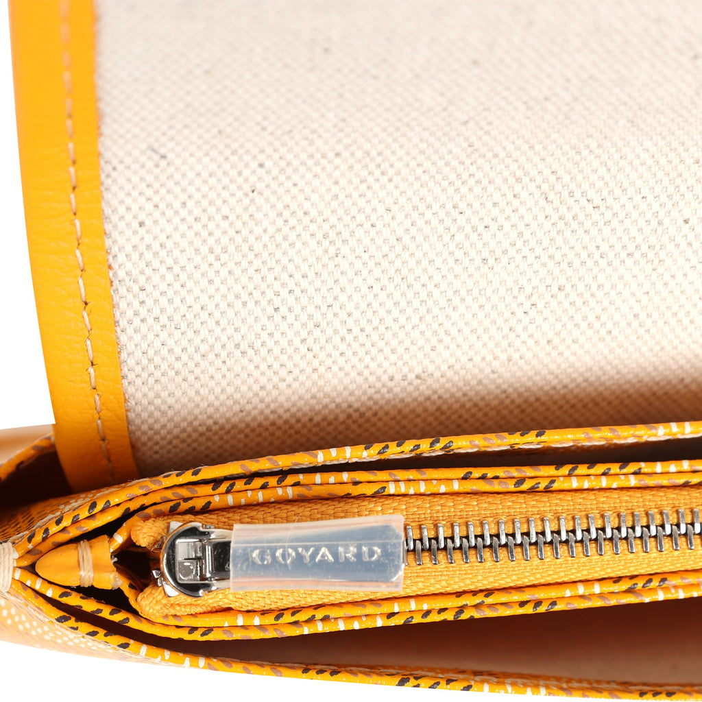 Goyard Plumet Pocket Wallet Yellow Goyardine Palladium Hardware Shop for an authentic Goyard Plumet Pocket Wallet in yellow canvas with palladium hardware in new and never worn condition at Madison Avenue Couture.