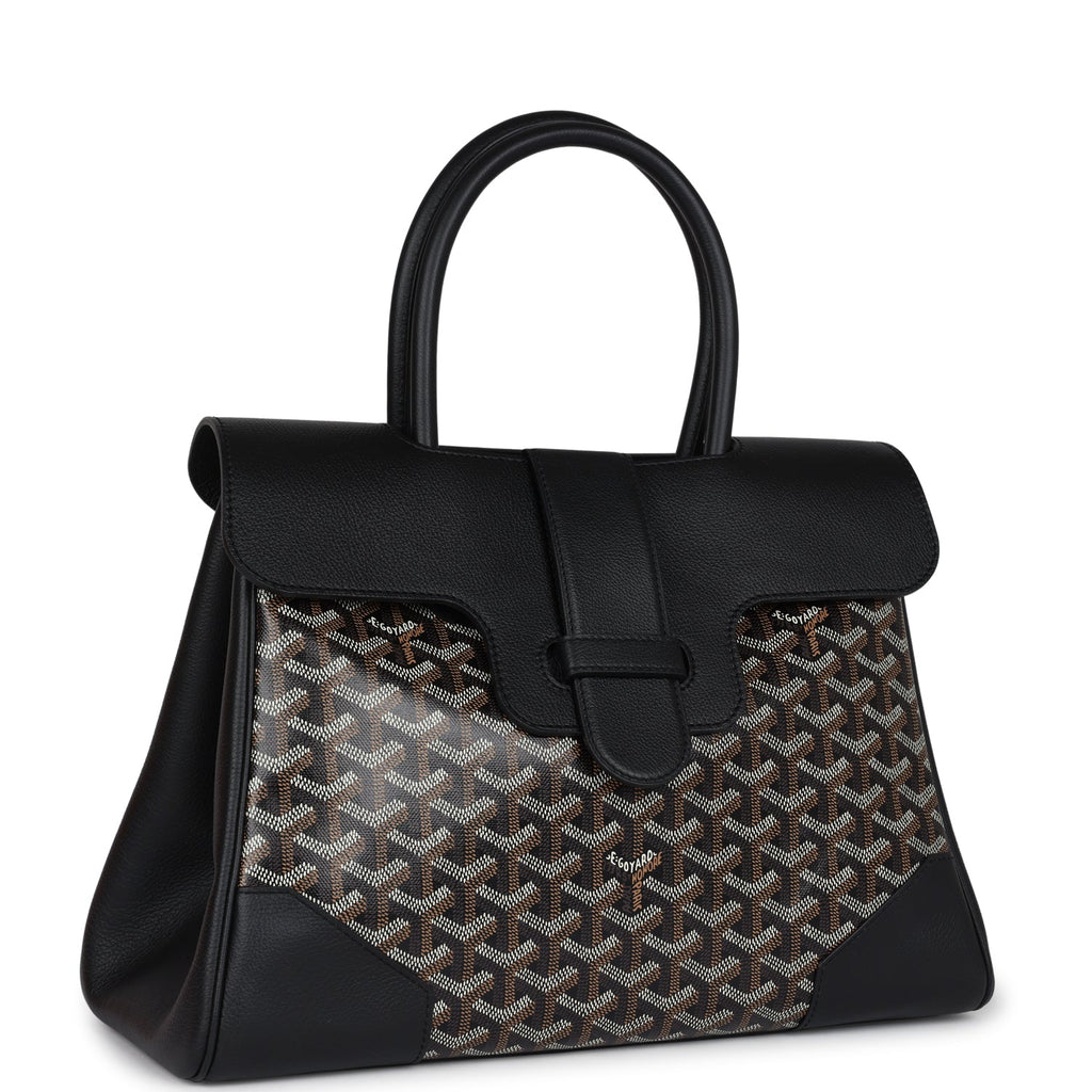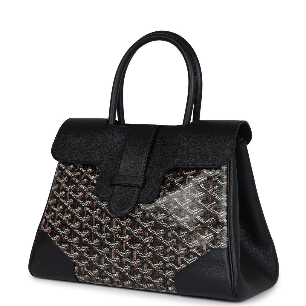 Goyard Saigon Tote Black Goyardine Canvas Palladium Hardware Shop for an authentic Goyard Saigon Tote in Black Goyardine canvas and Chevroches calfskin with palladium hardware in new and never worn condition at Madison Avenue Couture.
