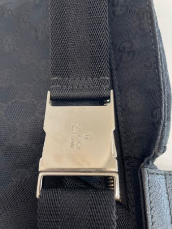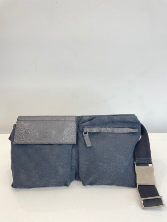 Gucci Black GG Monogram Web Double Pocket Waist Bag
