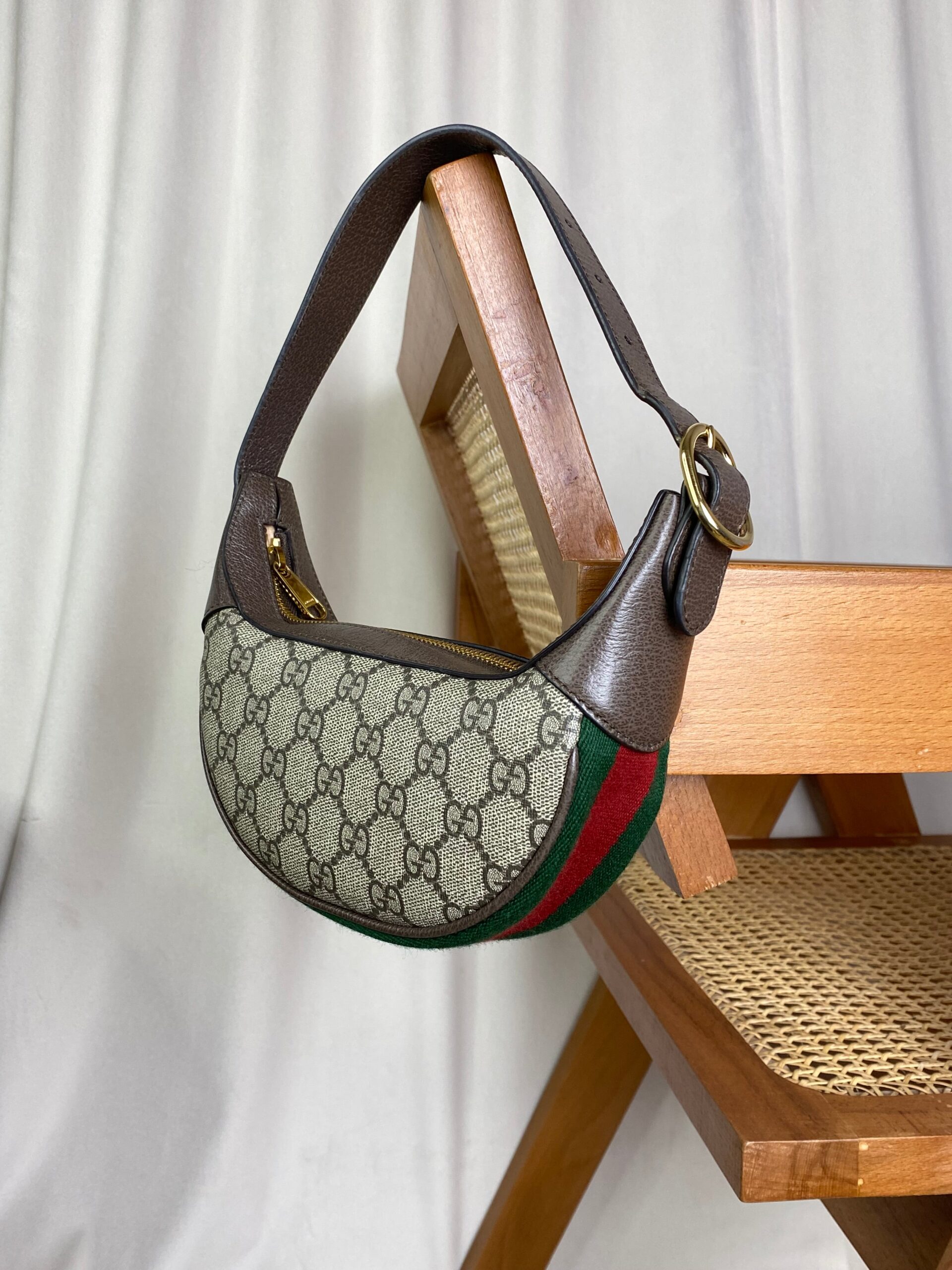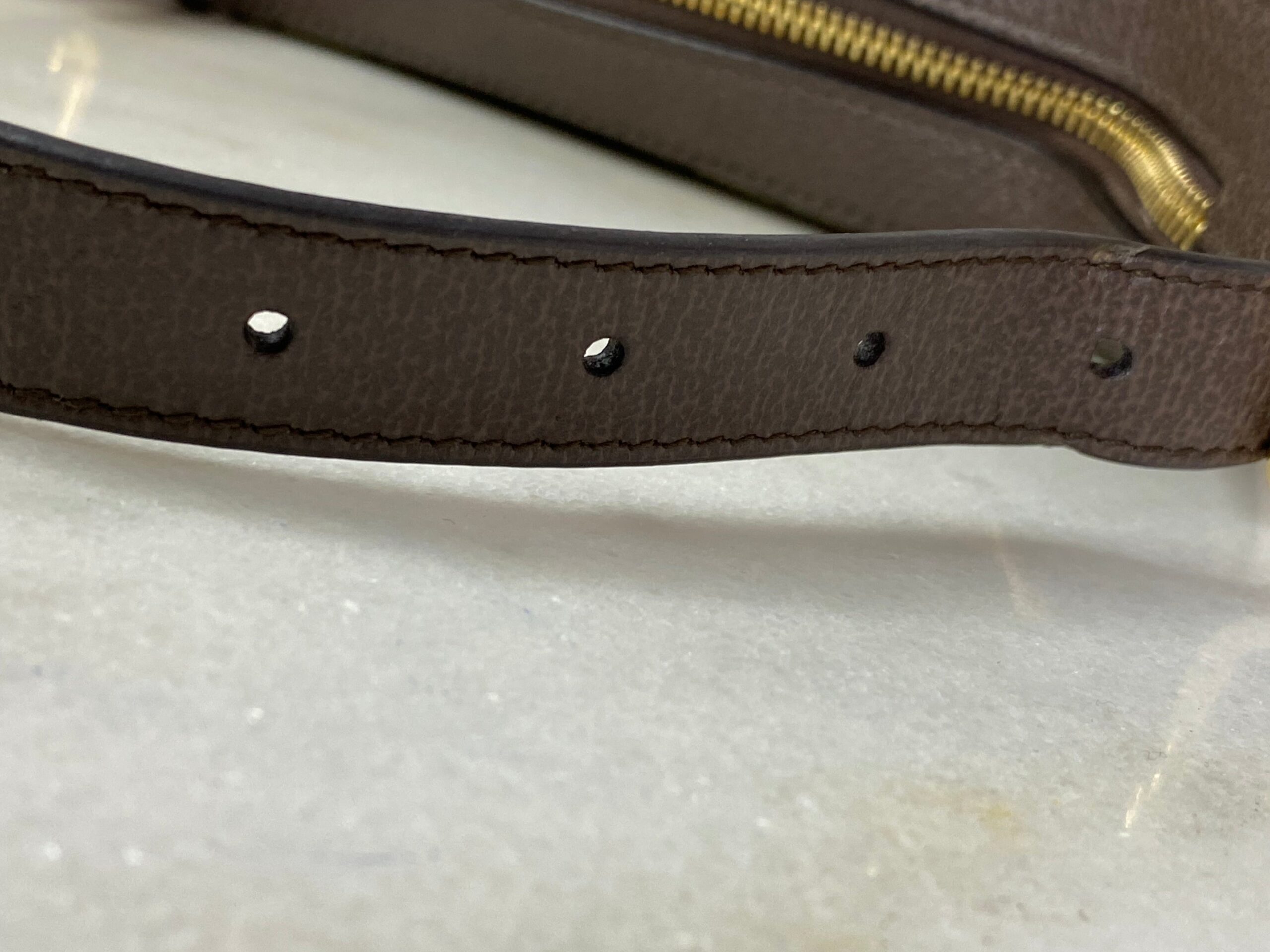 • Material: Ebony GG Coated Canvas and Brown Leather Trim with Green/Red Web