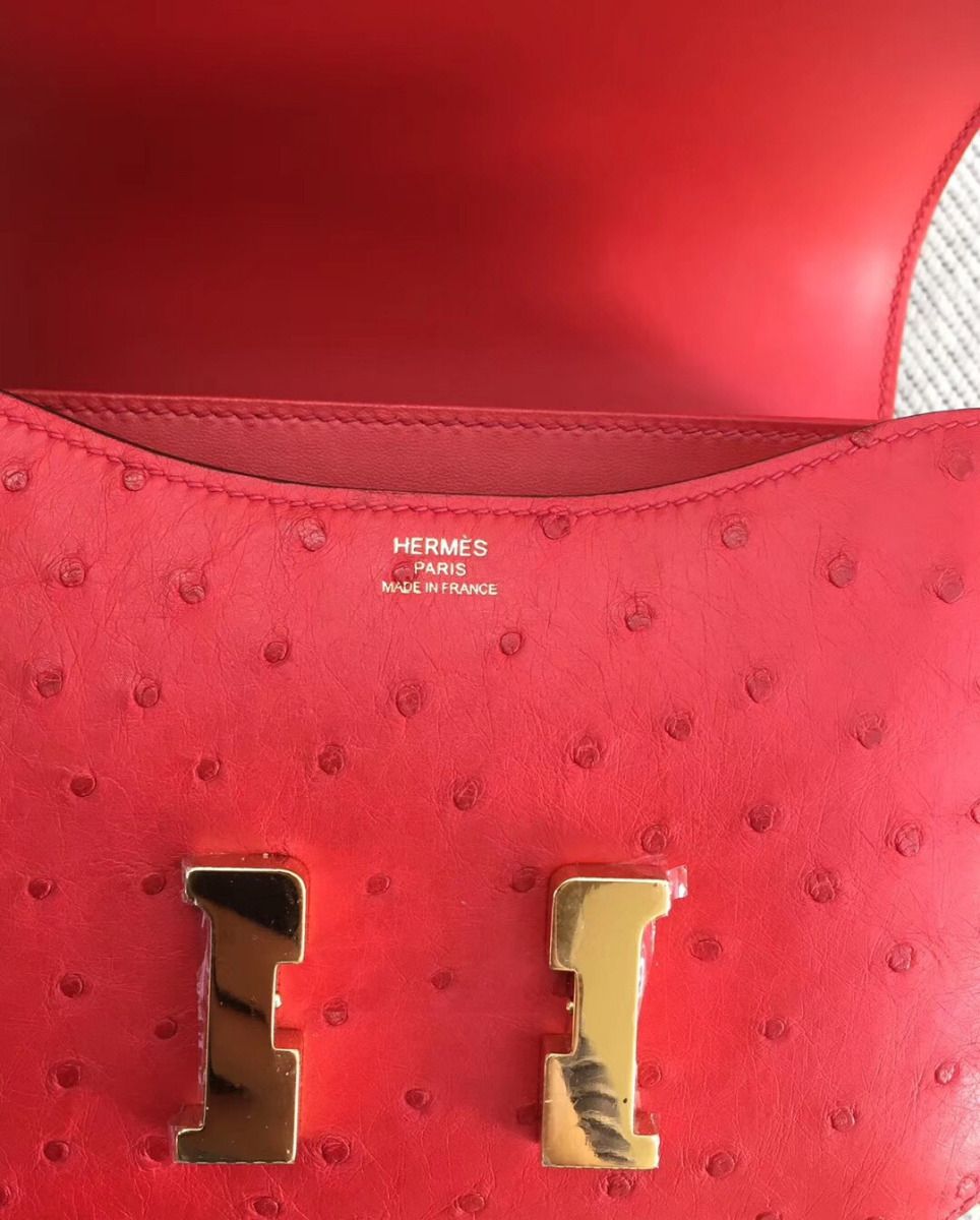 Hermes Constance 18 Handmade Bag In Red Ostrich Leather