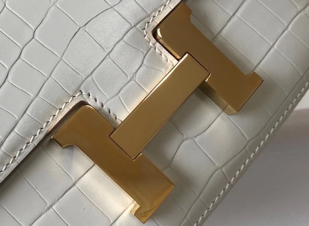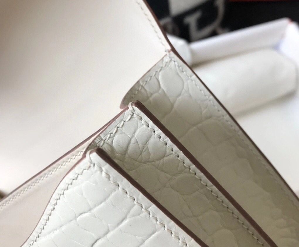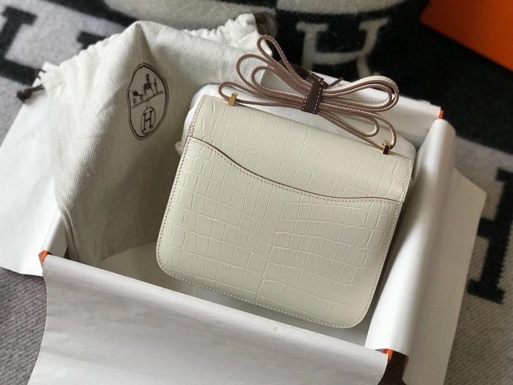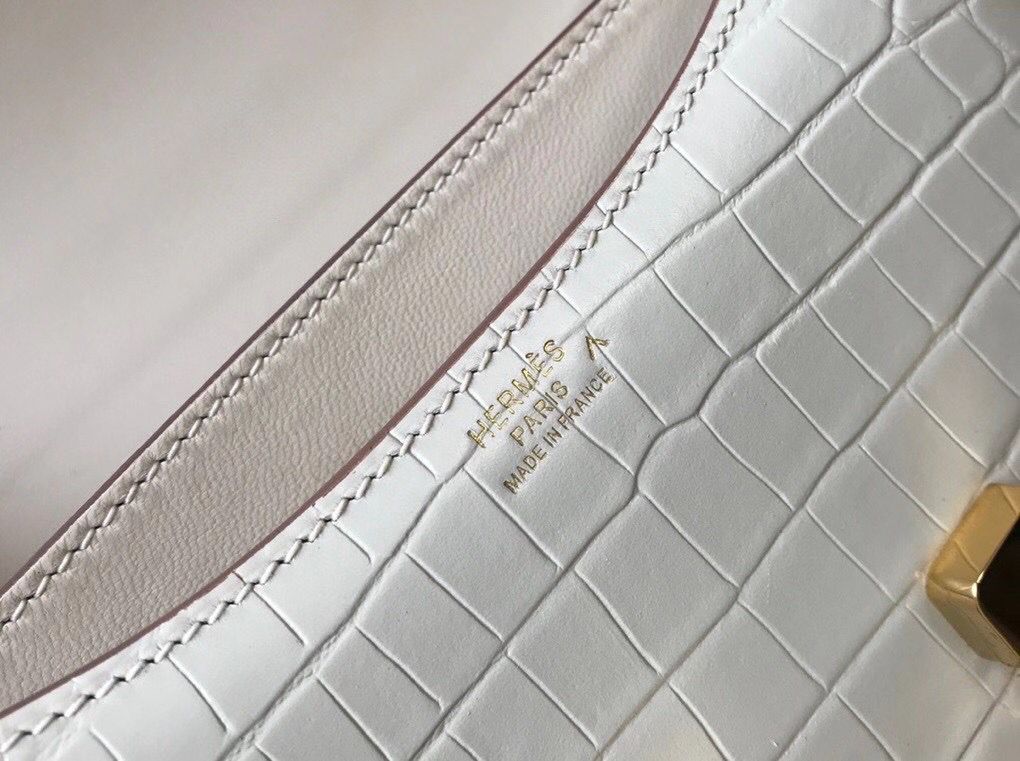 Hermes Constance 18 Handmade Bag In White Embossed Crocodile