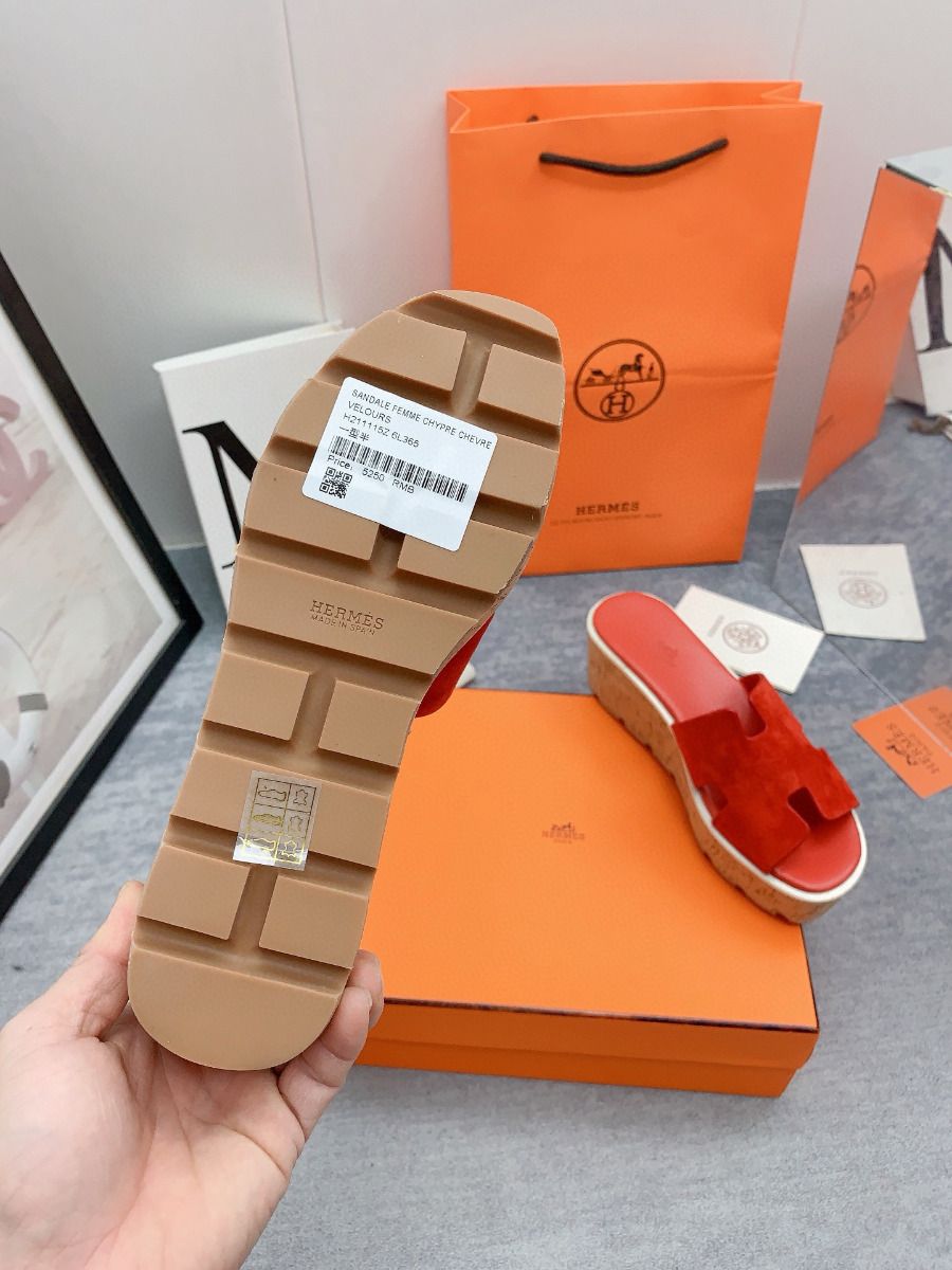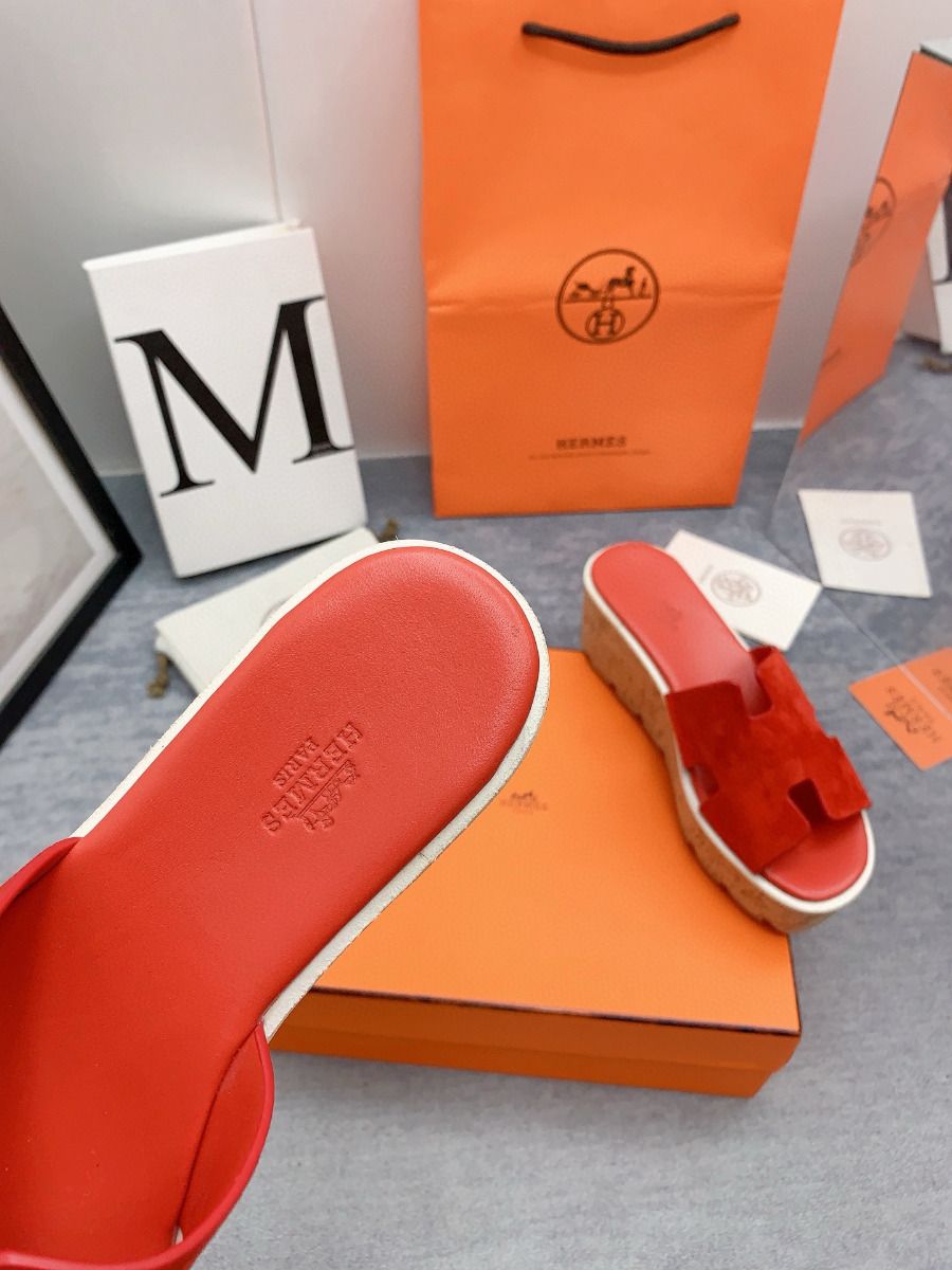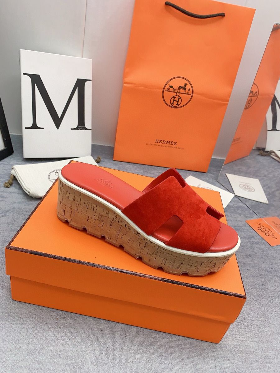 Be the first to review “Hermes Eze 30 Cork Platform Sandals in Piment Suede Leather”