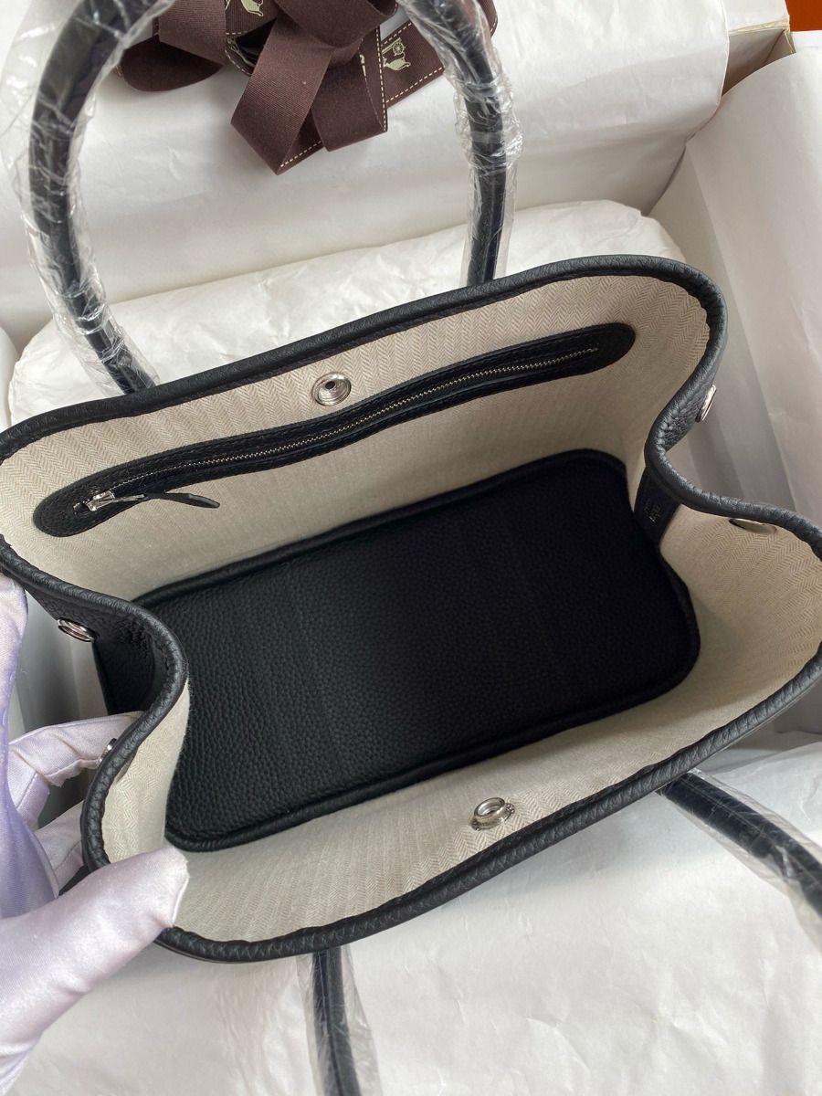Hermes Garden Party 30 Handmade Bag in Black Clemence Leather