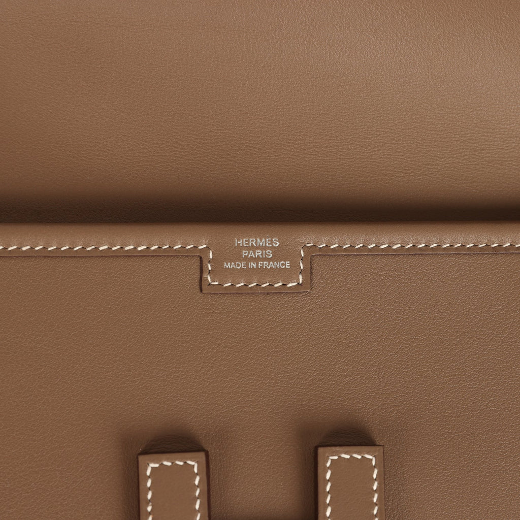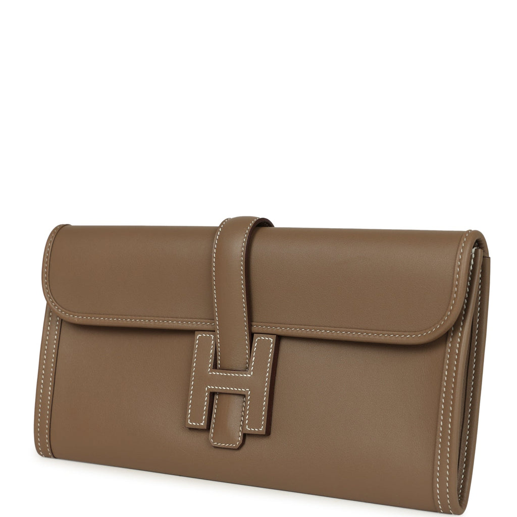 Hermes Jige Elan 29 Etoupe Swift Shop for an authentic Hermes Jige Elan Clutch in Etoupe swift leather in never worn condition at Madison Avenue Couture.