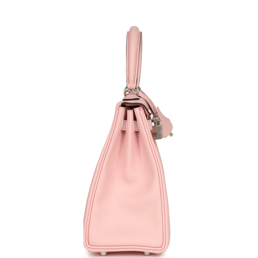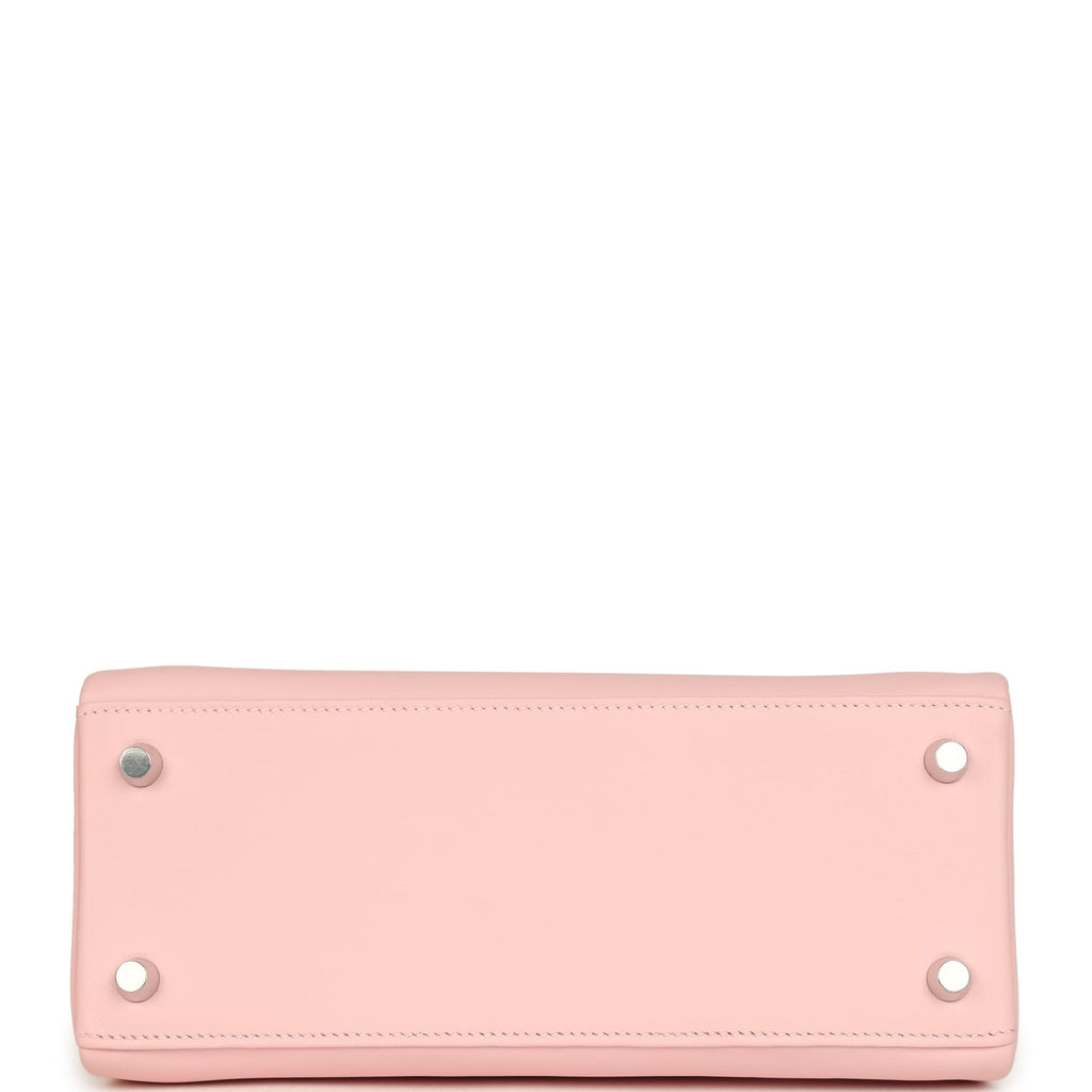 Hermes Kelly Retourne 25 Rose Sakura Swift Palladium Hardware Shop for an authentic Hermes Kelly Retourne 25 in Rose Sakura Swift leather with palladium hardware in new and never worn condition at Madison Avenue Couture.