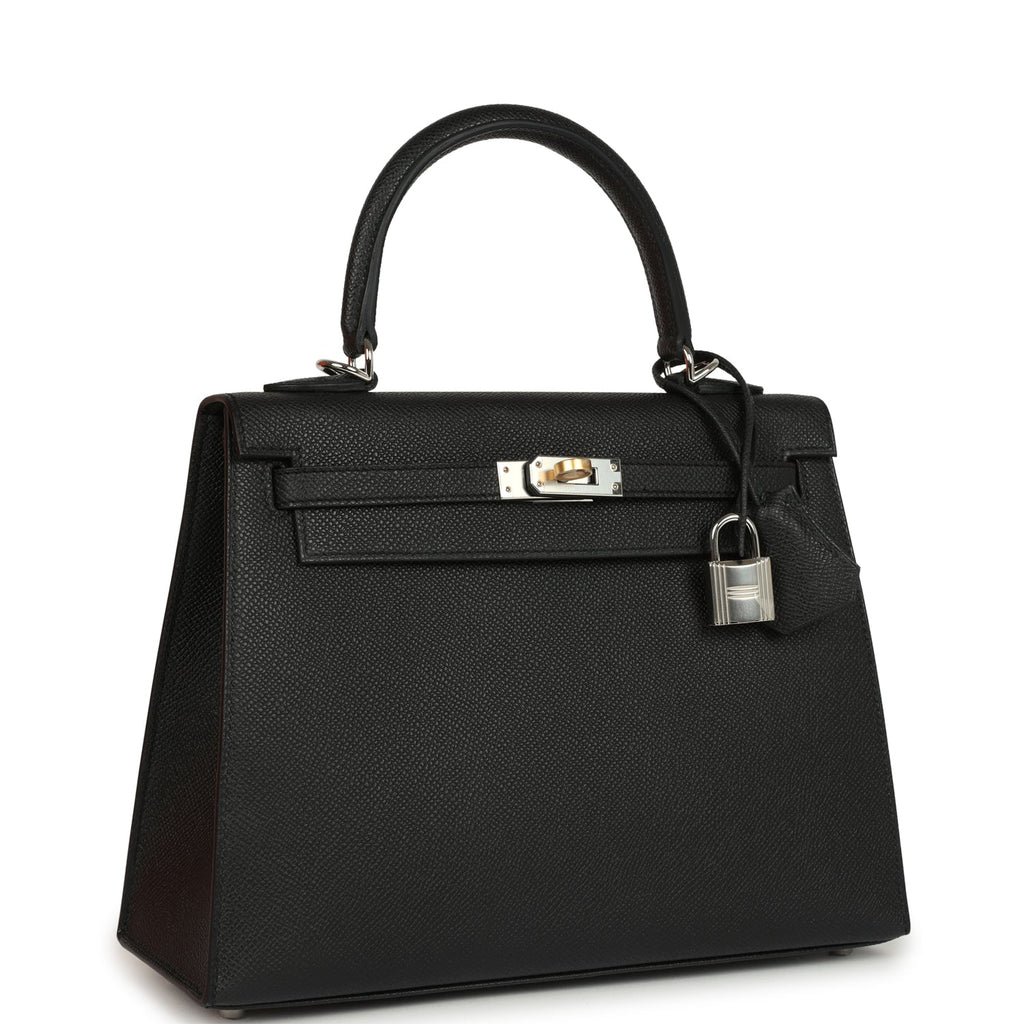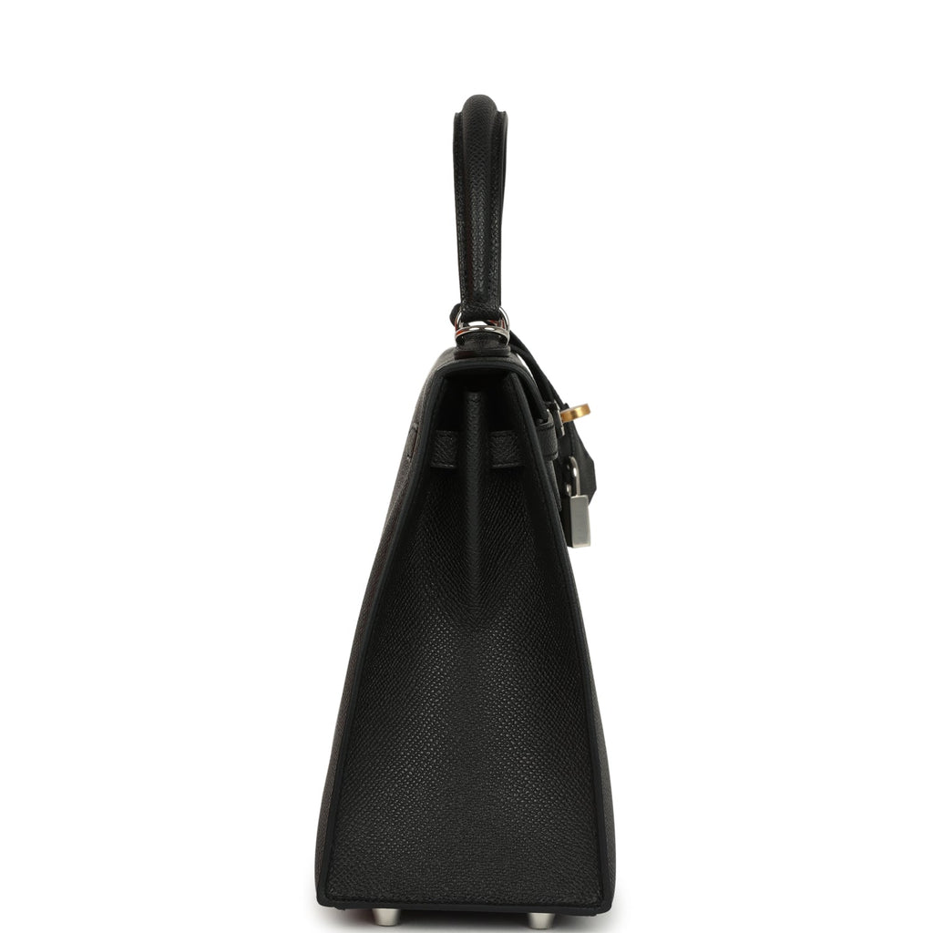 Hermes Kelly Sellier 25 Black Epsom Electrum Hardware Shop for an authentic Hermes Kelly Sellier 25 in Black epsom leather with electrum hardware in new and never worn condition at Madison Avenue Couture.