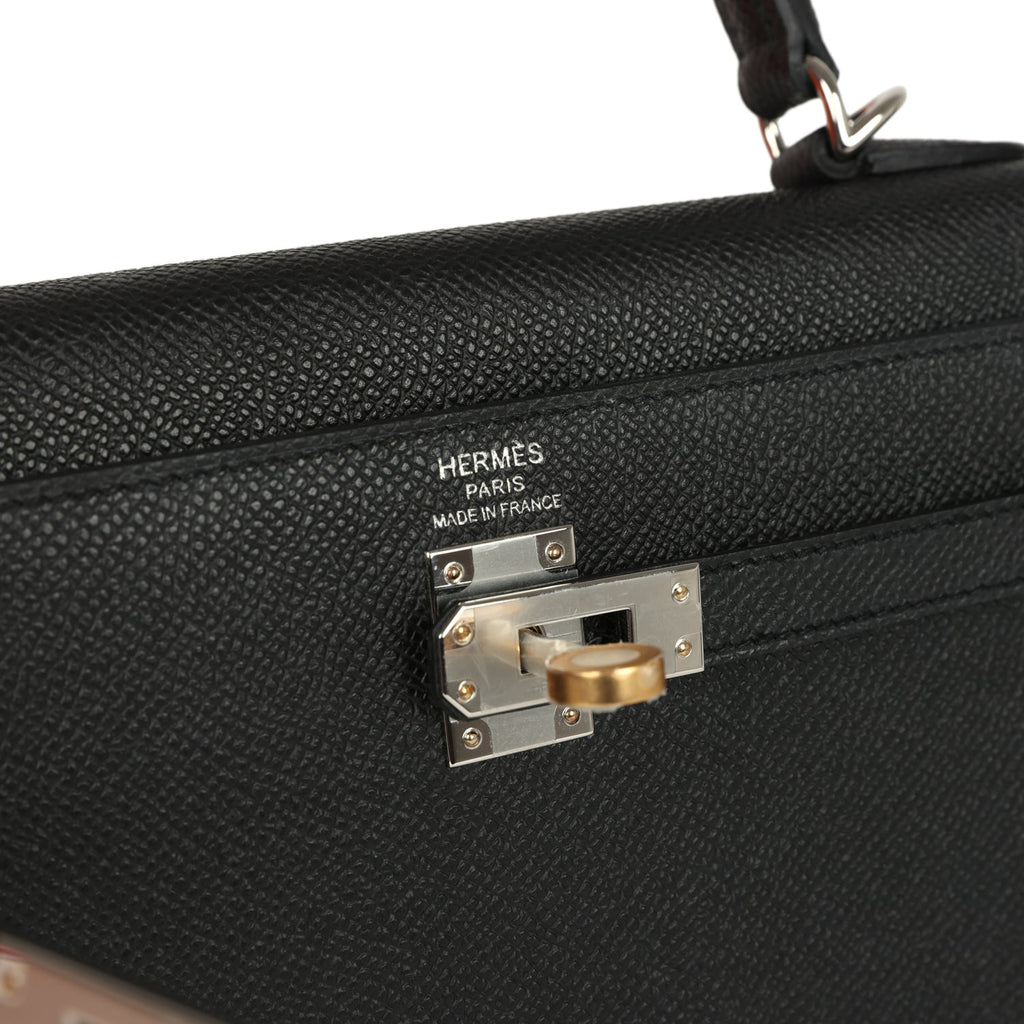 This Kelly, in the Sellier Style, Kelly, is in Black epsom leather with Electrum silver and gold hardware, featuring tonal stitching, front flap with two straps, front toggle closure, clochette with lock and two keys, a single rolled handle and removable shoulder strap.The interior is lined in Black chevre leather and has one zip pocket with Hermes engraved pull; pocket on opposite sideCollection: K (2025)Origin: FranceCondition: New and never worn (plastic on hardware)Accompanied by: Hermes box, Hermes dustbag, lock, two keys, clochette, clochette dustbag, strap, strap dustbag, felt, carebook, ribbonMeasurements: 9.8″ width x 7″ height x 3.75″ depth; 3.75″ handle drop (16.5″ shoulder strap drop)